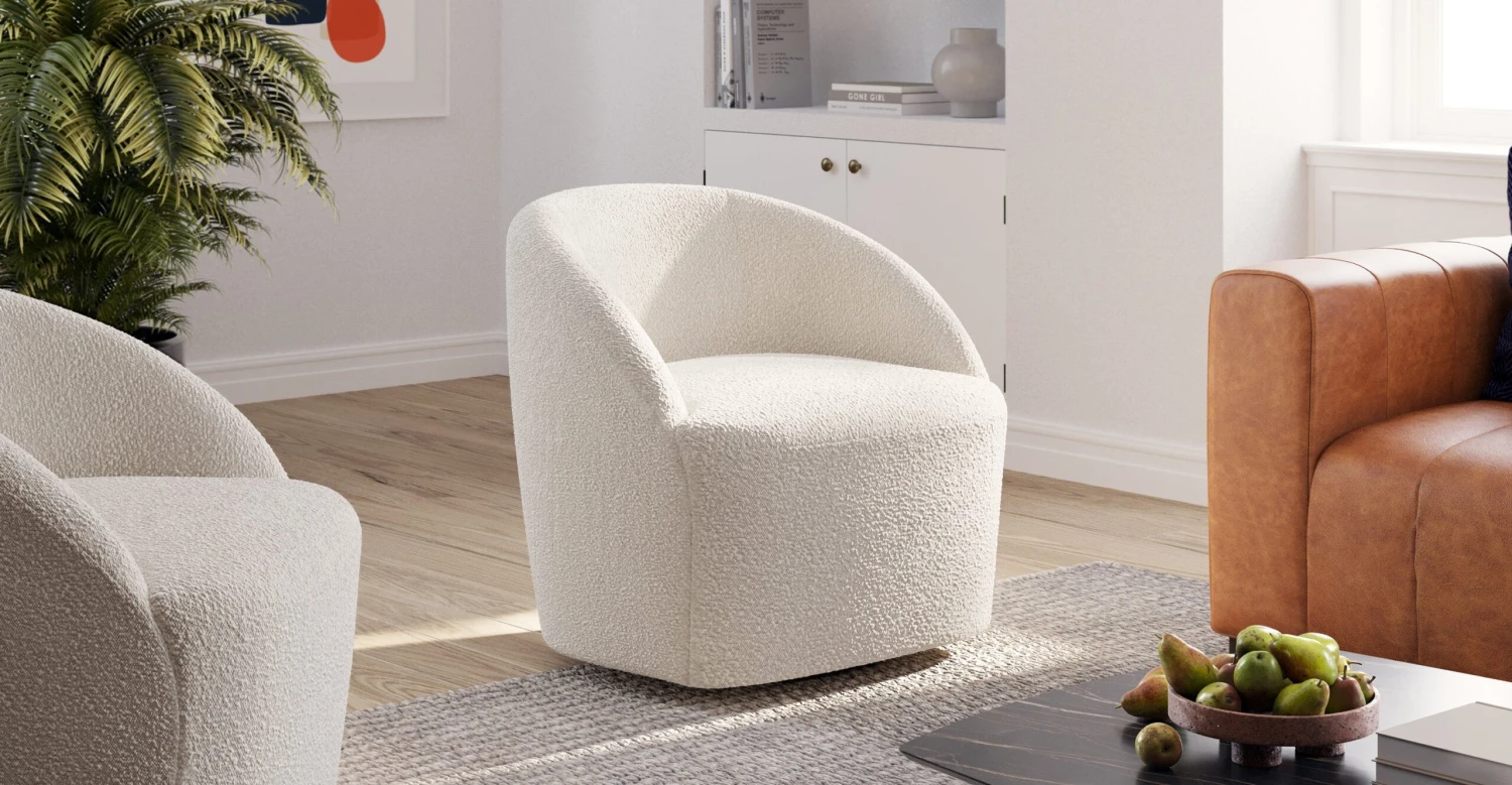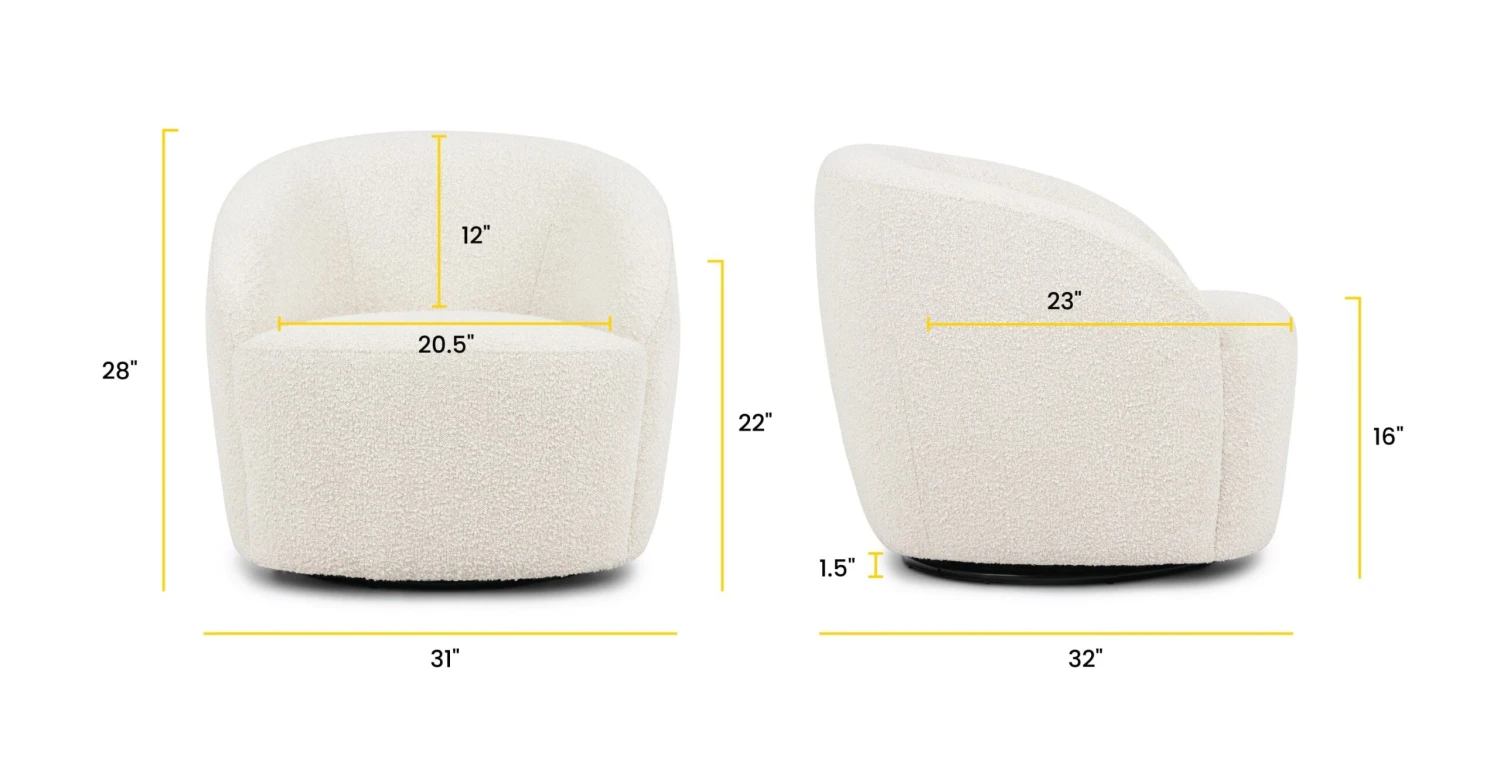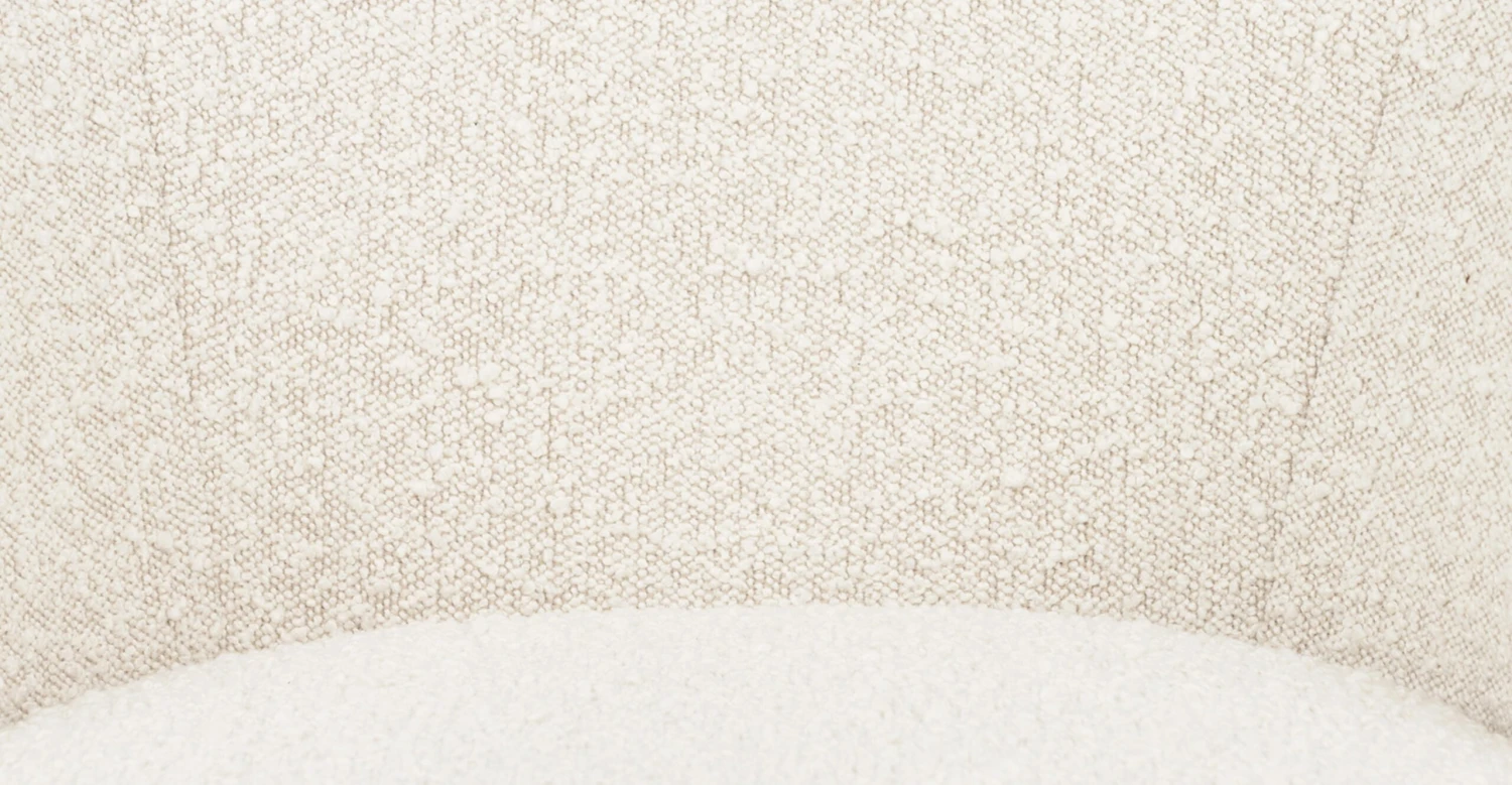 - Upholstered in Crema White bouclé