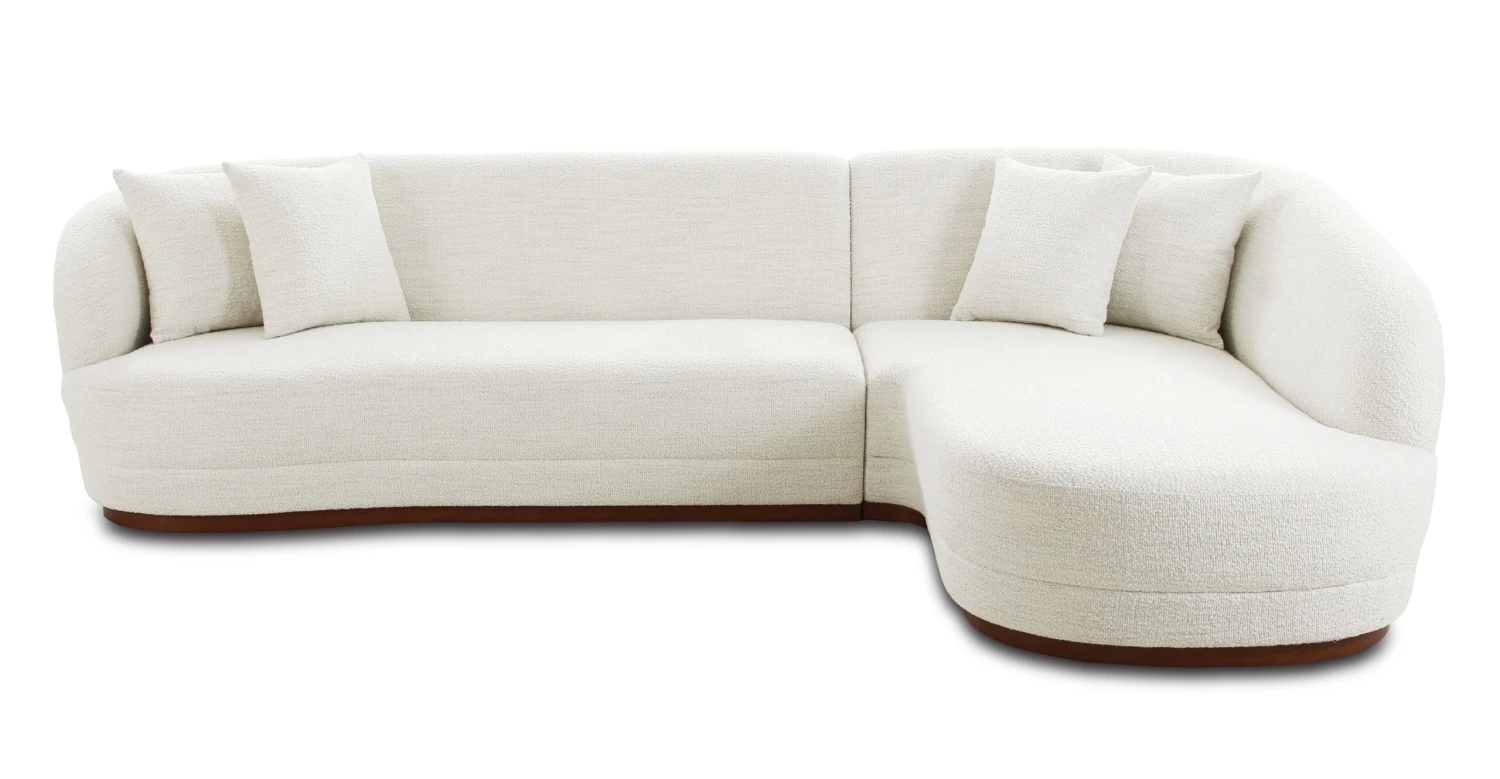 Our Arles Sectional Sofa boasts curves for days and tons of space for your family and friends. With a curved backrest, low profile, and minimalist wooden base, this sectional is everything we could want and more. Plus, its fixed seat and back cushions make it low maintenance, yet its high-quality fiber and feather-down fill are pure bliss.