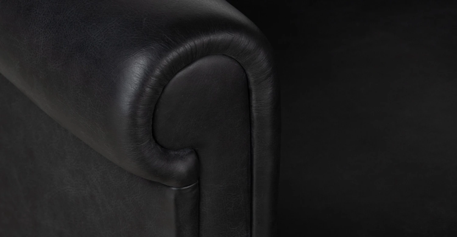 Meet the lounge chair that’s a classic reinvented with a sleek rendition of the classic roll-arm. Italian-tanned leather brings a touch of sophistication to your chill-out zone. The kiln-dried solid wood frame stands guard against warping, and high-density foam with a feather down topper ensures your comfort takes center stage. With zippered cushion covers for easy upkeep and solid wood legs for that final touch of elegance, this chair is more than just a seat; it’s your personal VIP zone for unwinding in style.