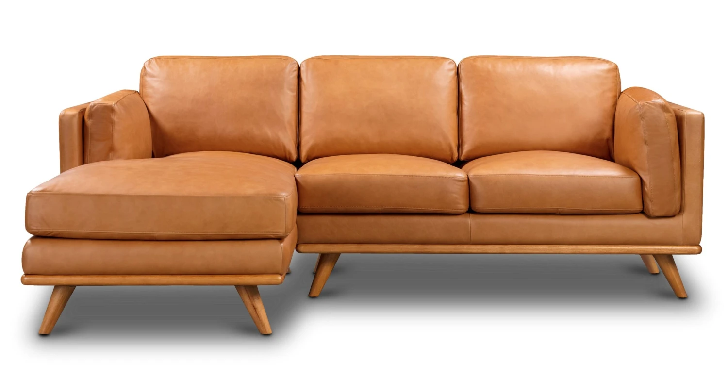 Get the popcorn ready, our Cadiz Sectional Sofa with Chaise is ready for your rainy-day matinee. Starring full-grain pure-aniline Italian tanned leather upholstery (that steals the show) and a mid-century mod vibe everyone loves, our chaise sofa is an icon. Side cushions add the perfect amount of additional support while the feather down and fiber fill cradles you in comfort.