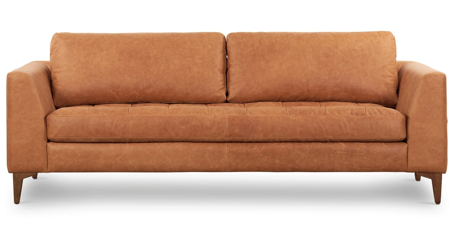 Whether you’re working from home, binge-watching TV, or catching up on your latest book club reads, you can depend on the Calle Sofa for refined comfort. Our supple pure-aniline dyed Italian tanned leather upholstery develops a gorgeous patina you’ll love coming home to. Further personalize your leather sofa with numerous leg options—from wood, to brass, to satin, or black— we offer the perfect tone to suit your taste and style.