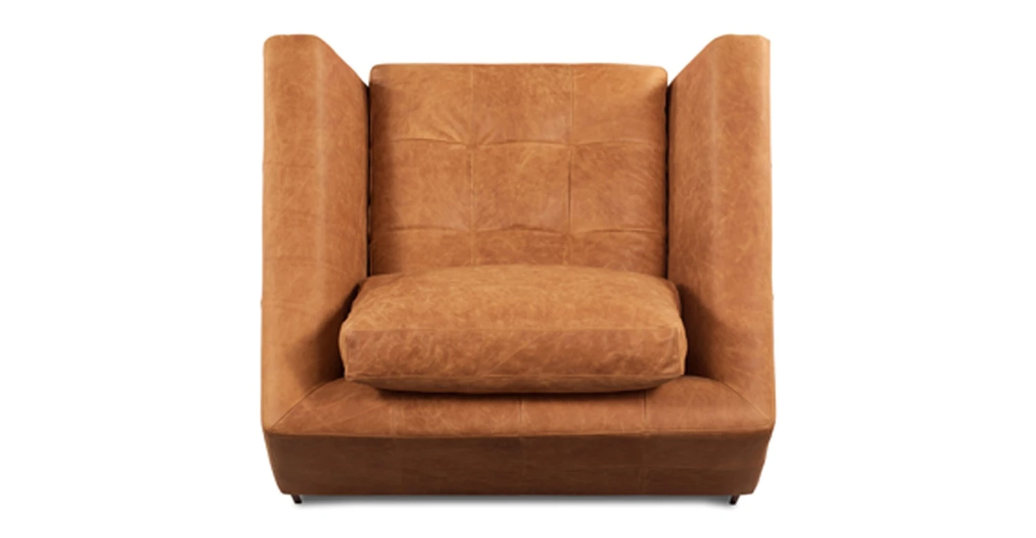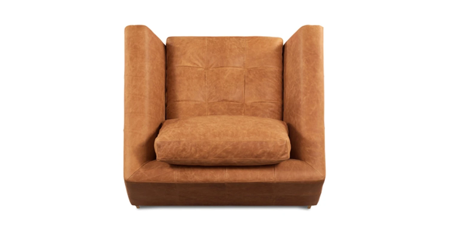 Grab your faux fur throw, favorite book, and cozy into the comfort of the Calle Lounge Chair. This pure-aniline dyed Italian tanned leather upholstery develops a gorgeous patina with age, turning this occasional chair into a one-of-a-kind piece. We’ve also given you the opportunity to further personalize your leather chair with multiple leg options—from wood, to brass, to satin, or black— we offer the perfect tone to suit your desired aesthetic and style.
