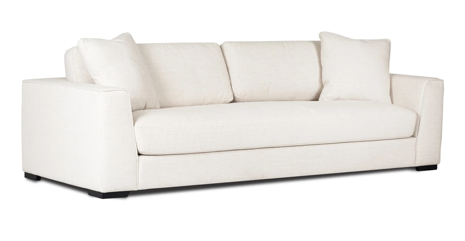 Simple, elegant, and eminently livable, the Capri Sofa is as comfortable as it is stylish. Upholstered in a durable neutral fabric, the bench-style seat cushion, which features a layer of feathers for extra softness, invites you to stretch out with a good book or enjoy a weekend nap. Resilient rubber webbing atop a corner-blocked solid wood frame provide superior support, while low, subtle legs let the sofa’s crisp, clean silhouette shine.