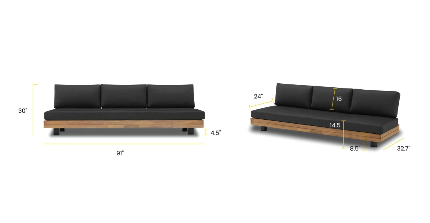 Seating Dimensions: 90.5″W x 24″D x 14.5″H
