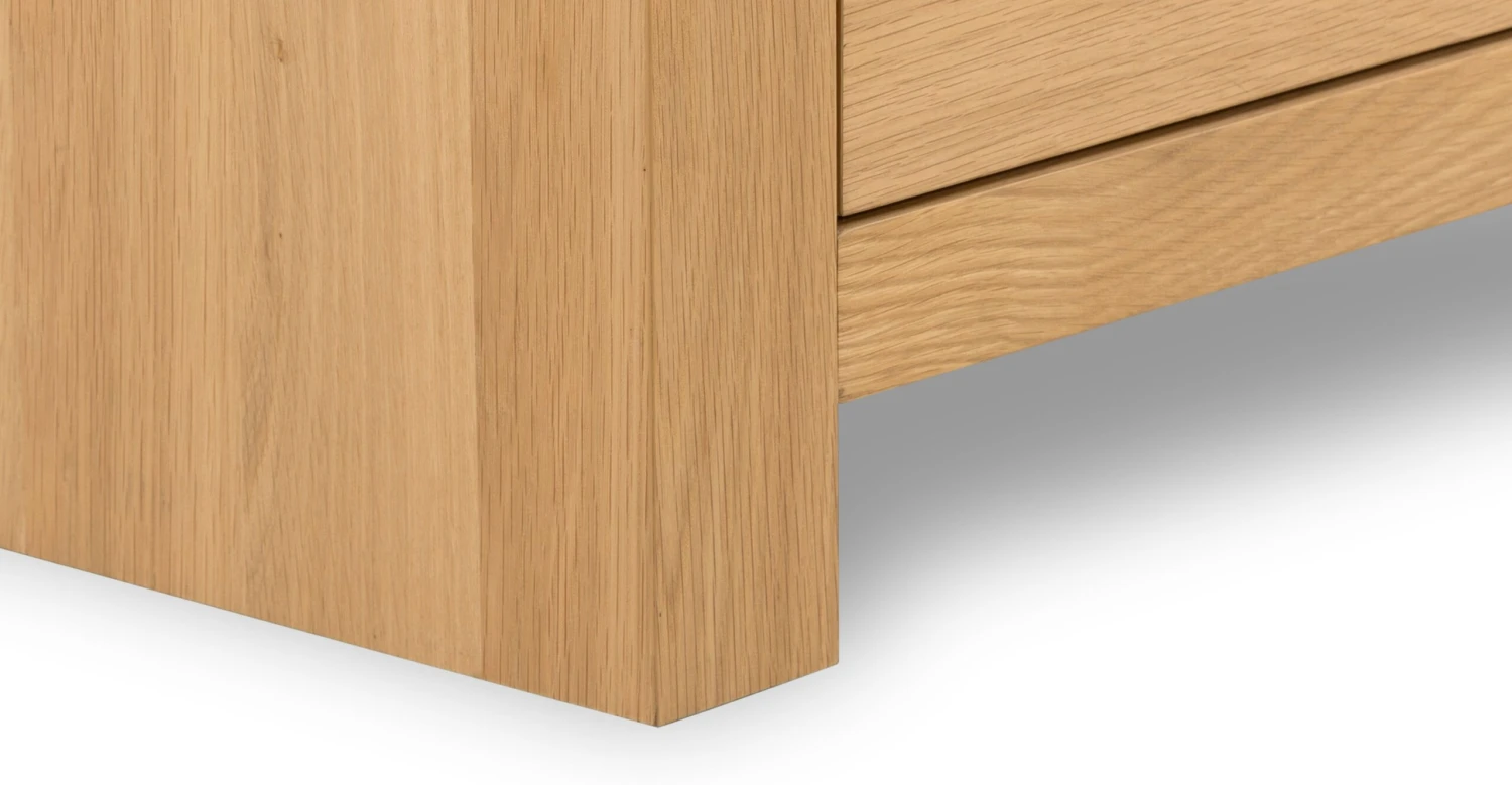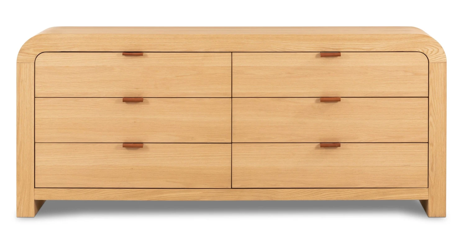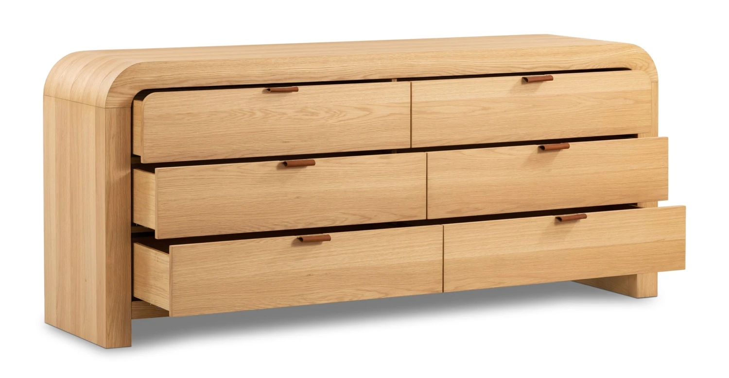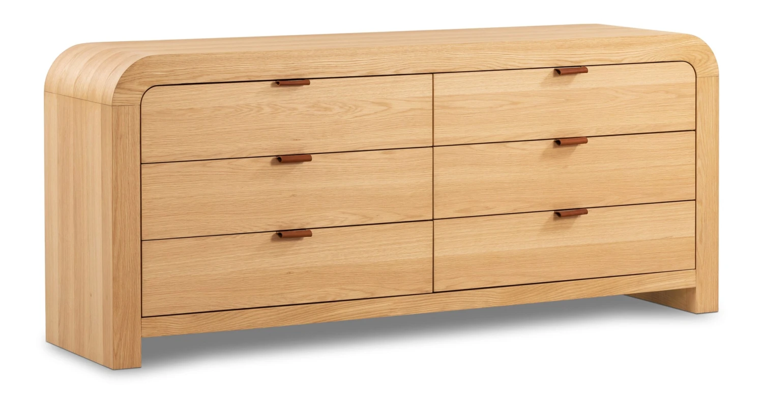 We’re falling hard for the waterfall detail on our Cirq Dresser. This natural looker is not just another pretty façade, there’s plentiful storage inside, too. Six soft-close drawers (with supple leather pulls – ooh la la) are the ultimate indulgence when it comes to functional furniture, and you’ll love that this dresser also has matching nightstands. Say hello to chic coordination!