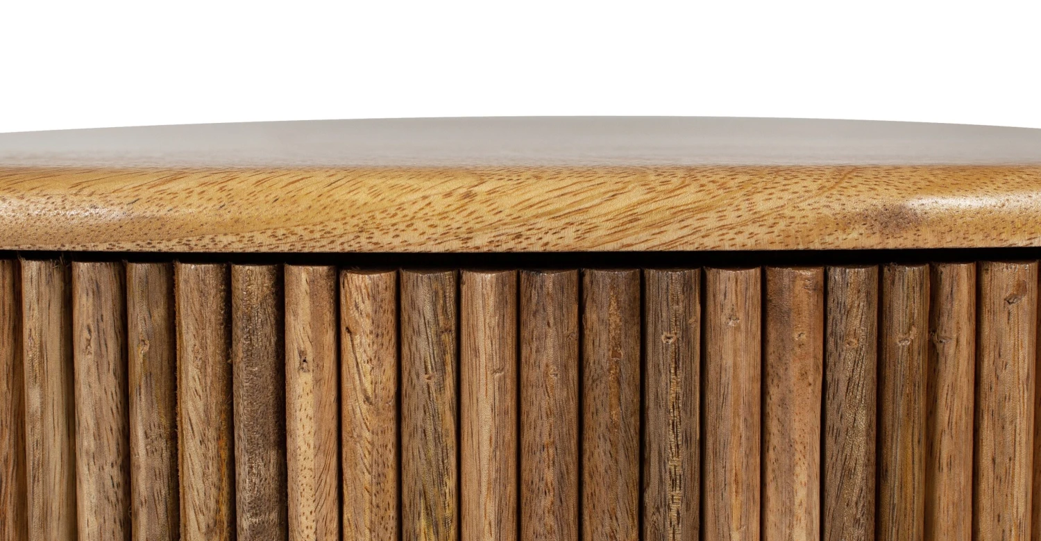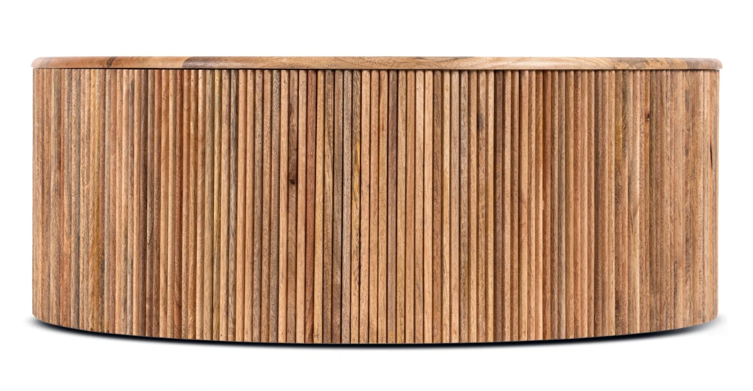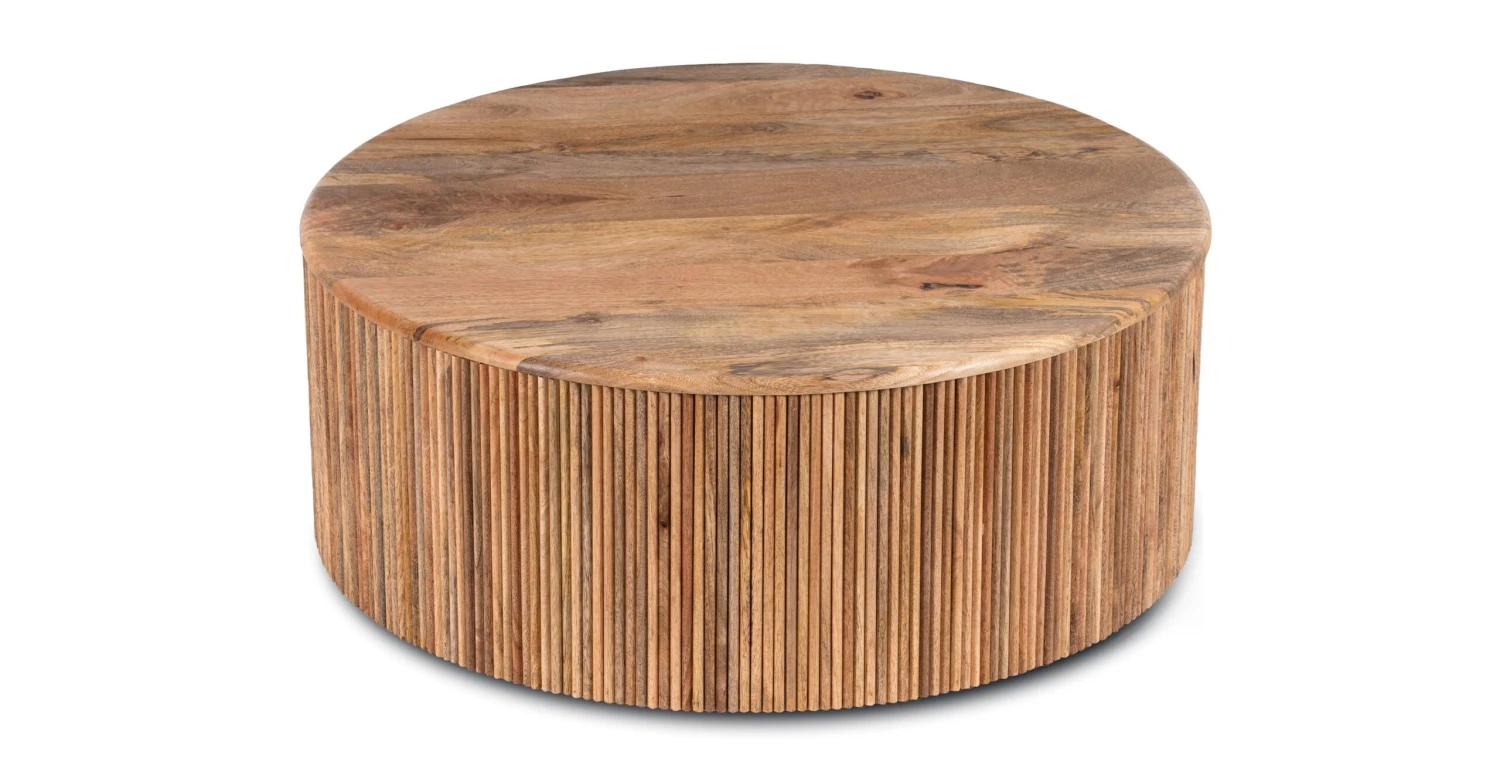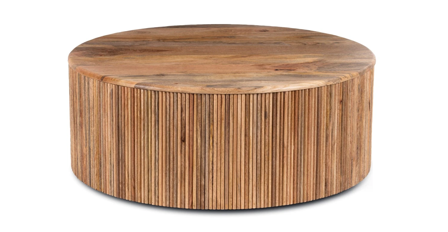 Let the natural light and dark wood tones of our Deja Coffee Table warm up your living room. With a solid Mango wood tabletop, ribbed wooden base, and loads of built-in storage, this drum-shaped coffee table lends a modern, yet earthy vibe to your space. Place a stack of your must-reads and top with a variegated (and easy-to-grow) pothos plant and you’re on your way to the coffee table of our dreams.