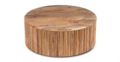 We like to think of our Deja Round Side Table as the boss of versatility. This mod accent table is perfectly comfortable living beside your sofa or armchair— but, she’s also ready for the spotlight and can handle herself front and center when moonlighting as a coffee table (with ample built-in storage!). The solid mango wood top and ribbed base create visual interest and boast natural wood variations that won’t soon be forgotten.