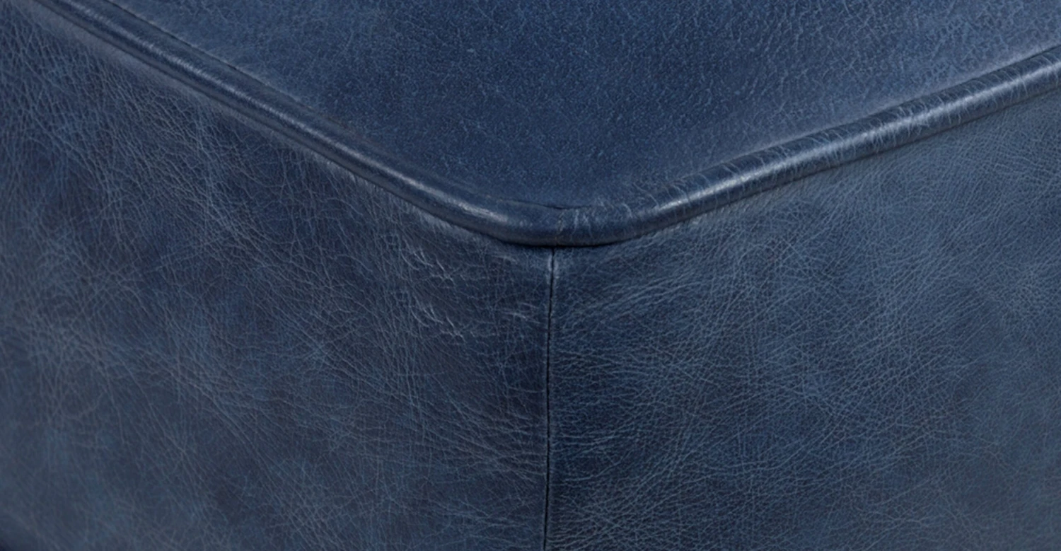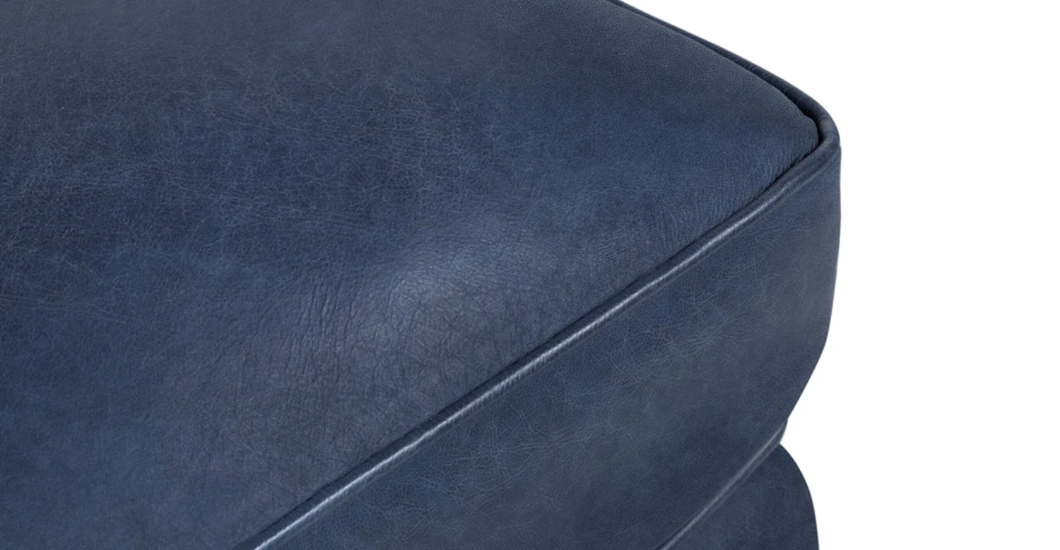 Our Essex Leather Ottoman boasts full-grain leather upholstery that’s smooth and supple, a feather down topper, and its low profile makes this oversized ottoman perfect for kicking up your feet or an impromptu game night. This ottoman is the ideal companion for turning our Essex Sofa and Lounge Chair into the best seat in the house. Yet, it also pairs well with your fabric sofa for a more eclectic and collected look.