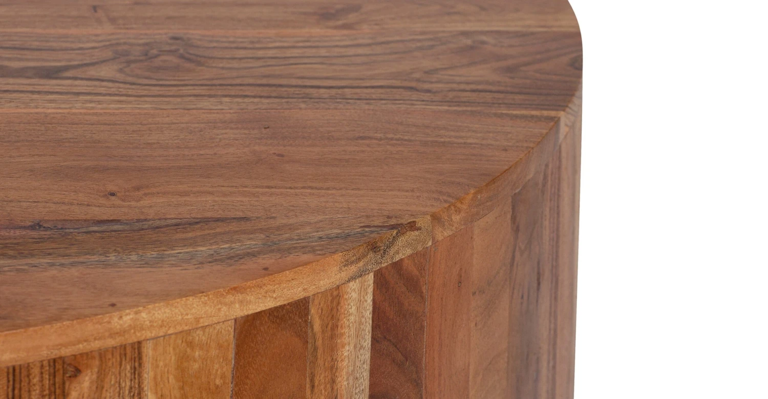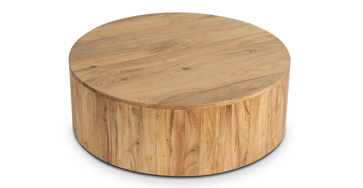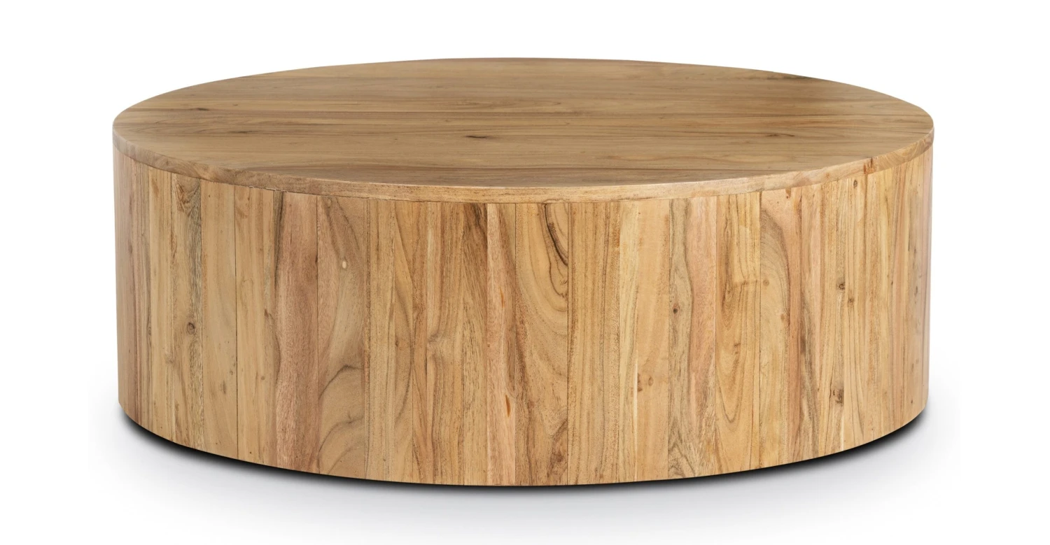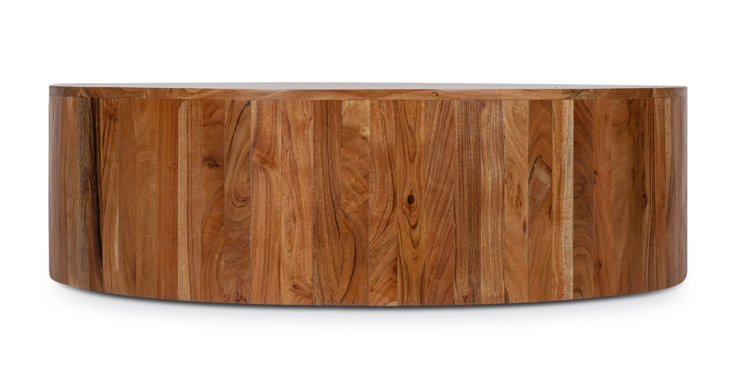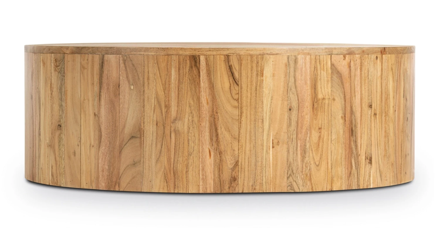 Let’s talk more about this showstopper, because our Gamla Coffee Table steals the show. Crafted by skilled artisans in India, this coffee table features kiln-dried acacia wood that’s known for its gorgeous grain in varying tones. A simple round silhouette really lets the natural wood’s characteristics shine. Top with a couple of your favorite books and a trailing plant, and let this table do the rest.