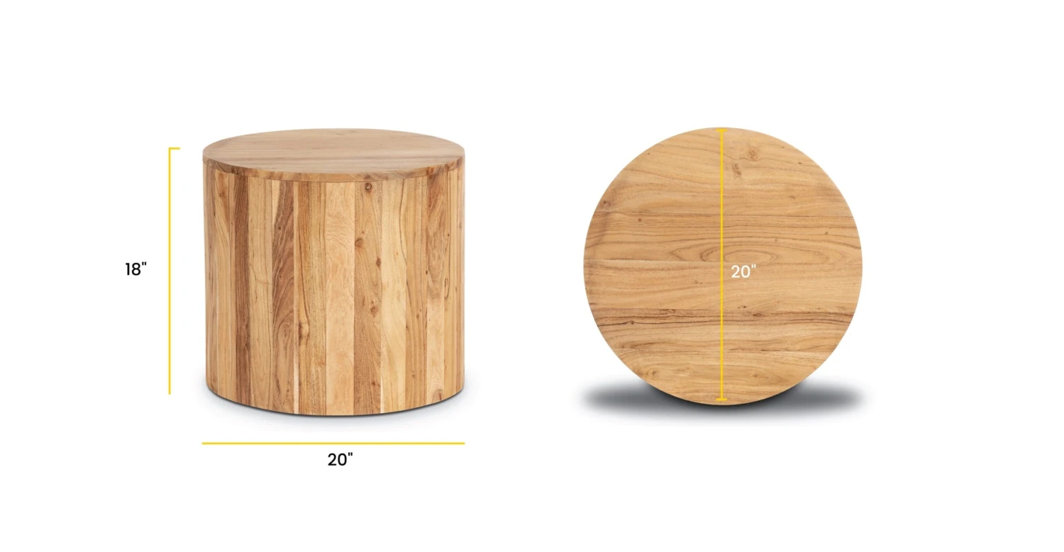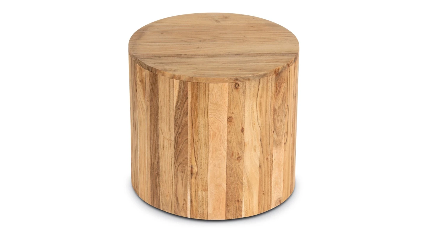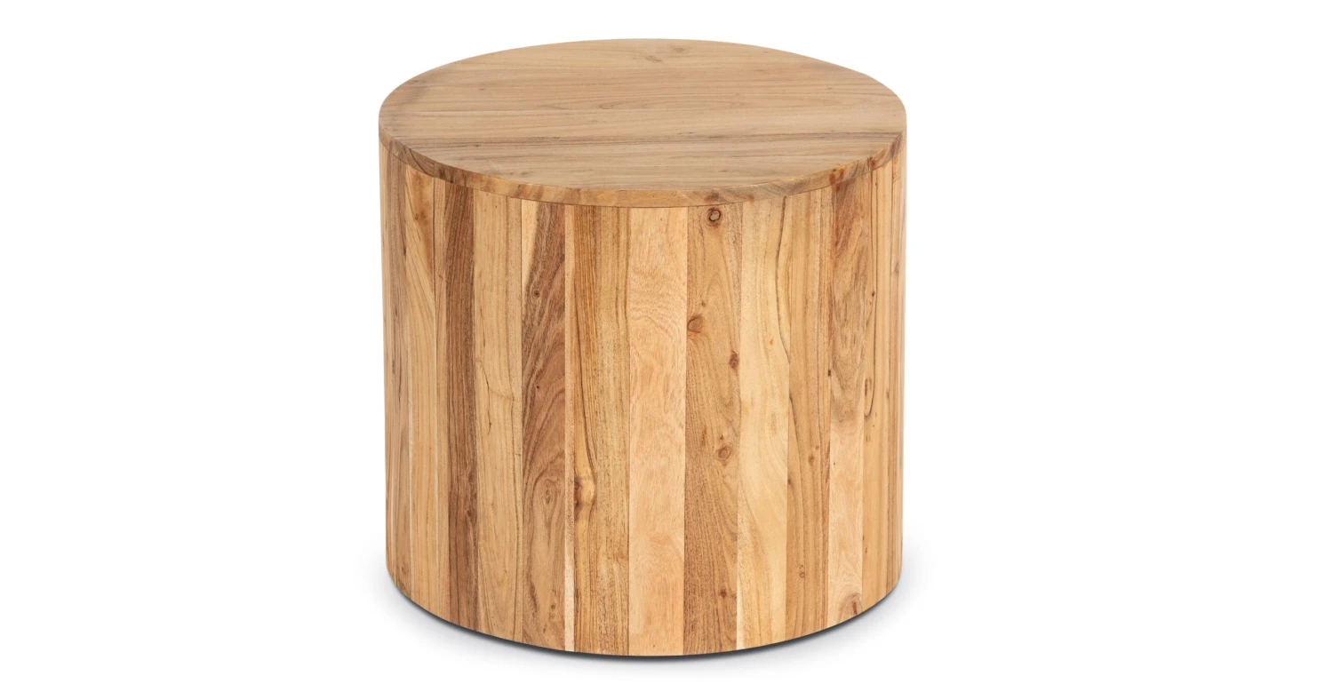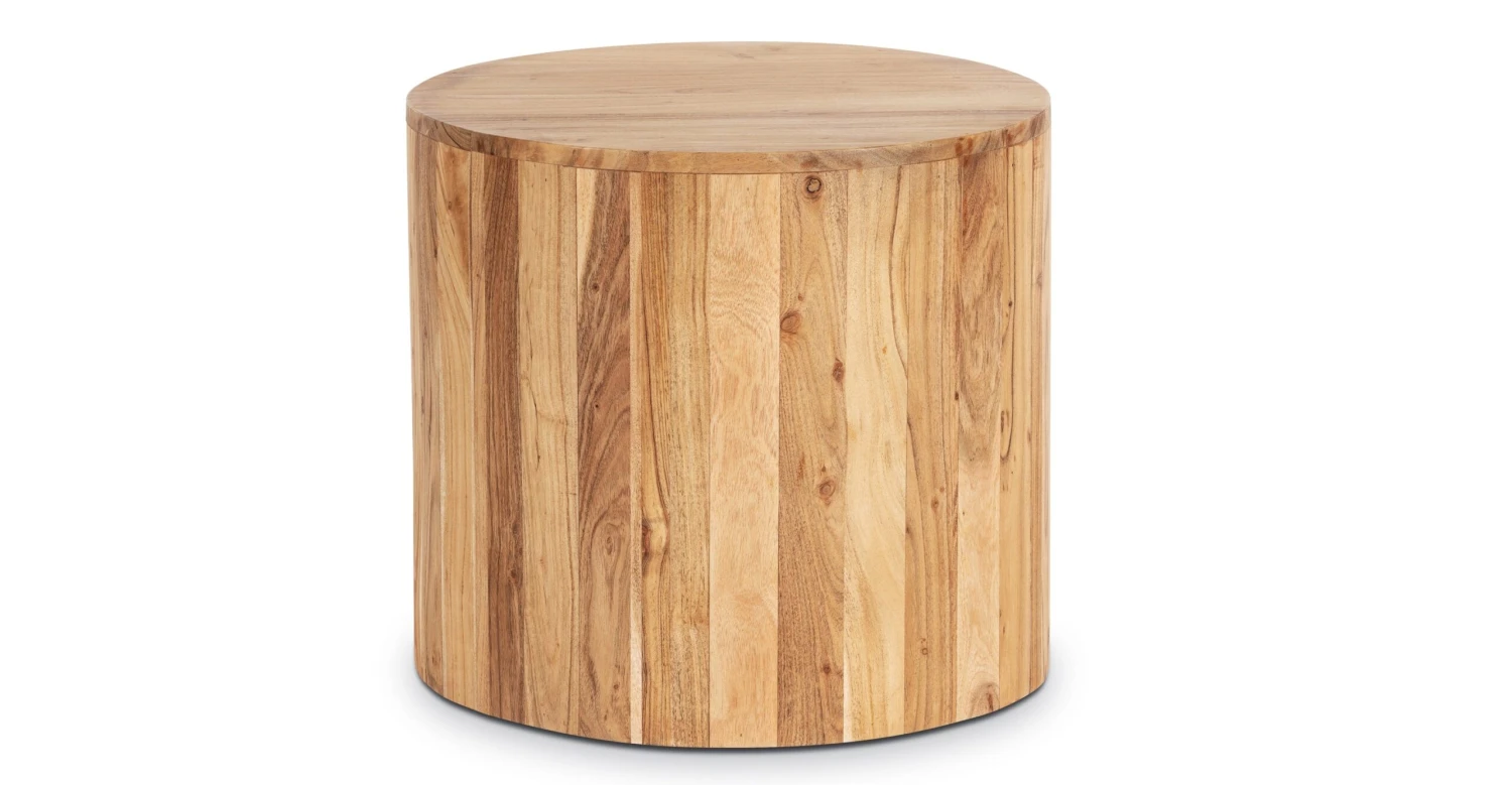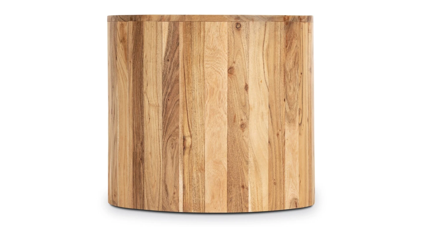 With a simple drum shape and out-of-this-world acacia wood construction, our Gamla Side Table will bring a sophisticated warmth to your place. Skillfully crafted by artisans in India, each accent table boasts gorgeous and natural wood grain in varying tones, ensuring the table you receive is one of a kind. Placed beside your bed, sofa, or lounge chair, this wood table is both functional and fabulous.