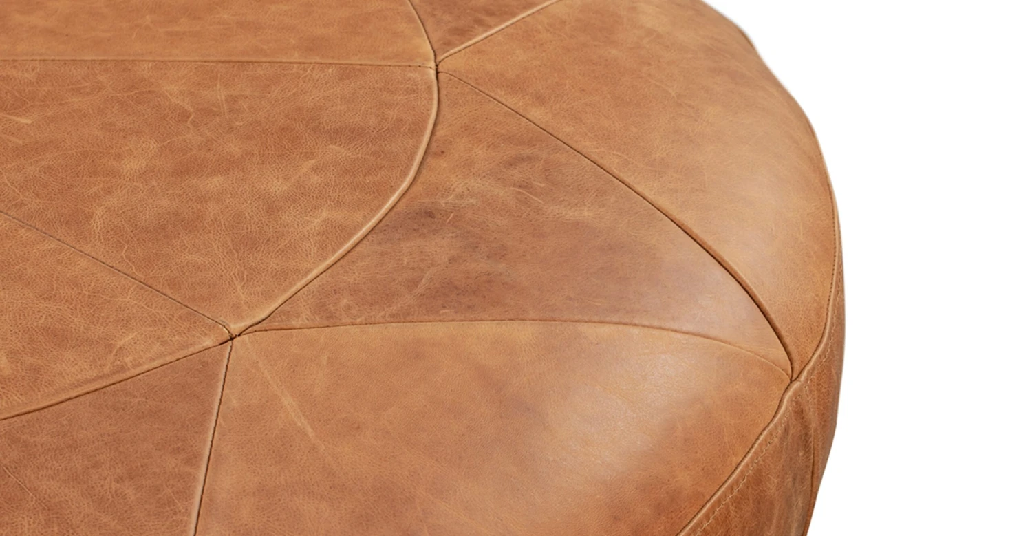 Showcase the Gio Ottoman in your living space for an exquisitely functional piece that is truly one of a kind. Each is crafted with genuine Italian tanned leather upholstery that’s minimally processed to accentuate the hide’s natural character, bumps and all, for a unique look that patinas well with age. A seamed geometric design captures the eye while its high-density foam cushion with feather down top layer makes this ottoman a luxurious spot to put your feet up. Its rounded exposed wood frame and tapered legs with protective foot pads offer a modern edge, while walnut stain finish brings richness to any room.