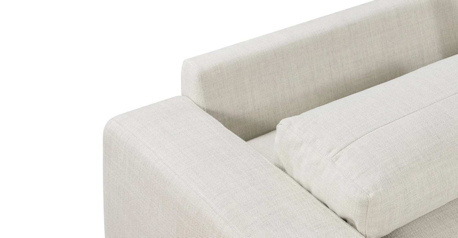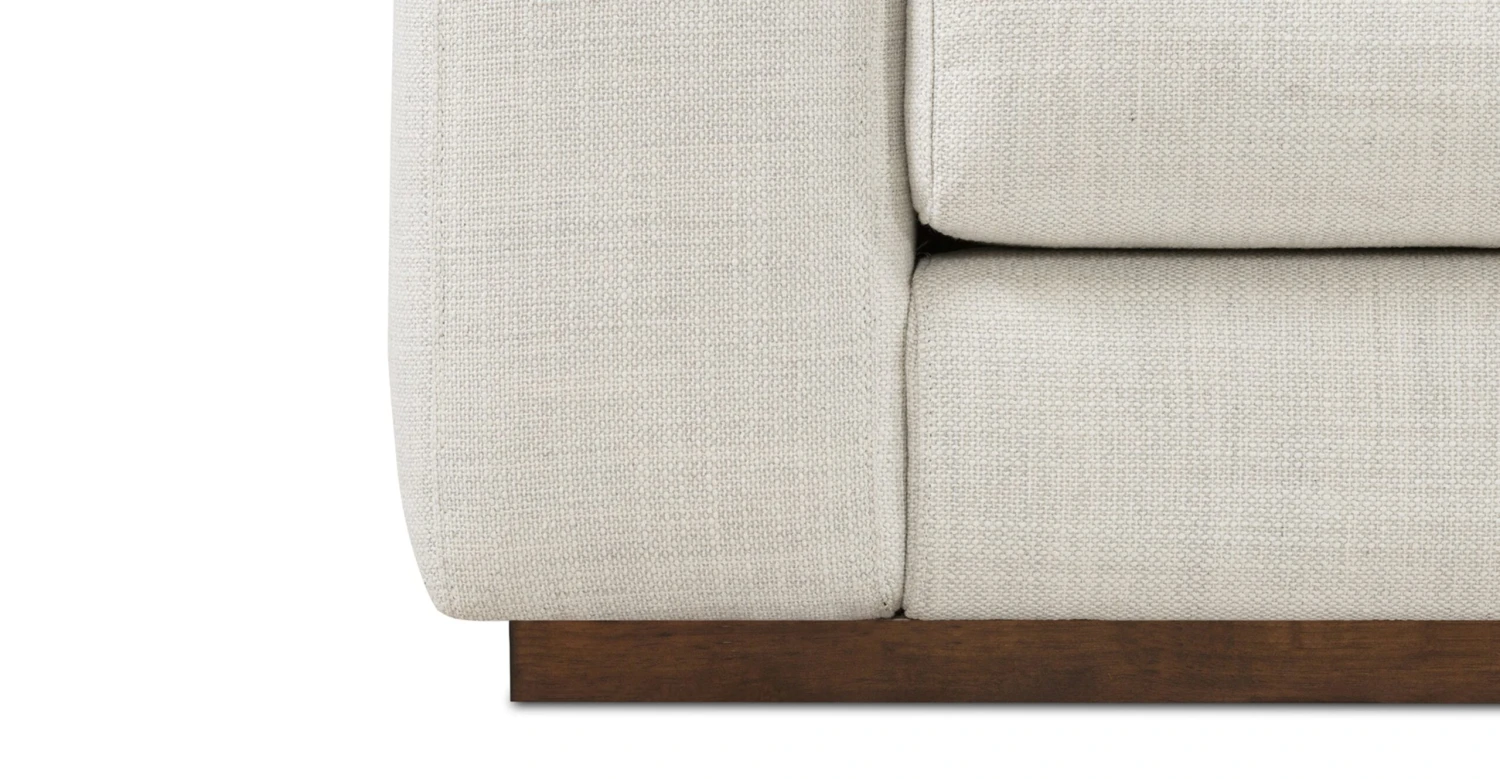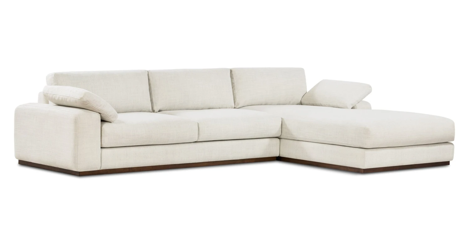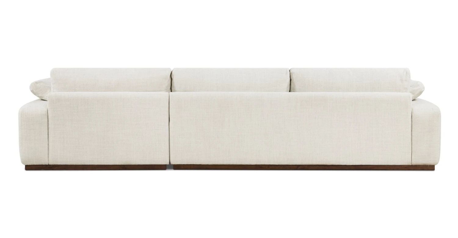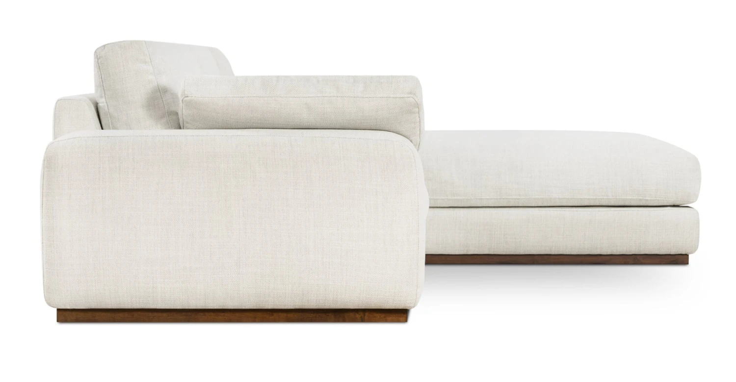 Our Malaga Sectional Sofa in Froth Grey is the epitome of perfection. This low, deep lounge sofa is where you’ll spend most of your time in the near future, and its wide armrests just happen to be the favorite resting place of many tiny fur babies. A gorgeous wood base in a walnut finish spans the entire length of the sofa, adding major drama. Easily position the two throw pillows to suit your lounging needs.