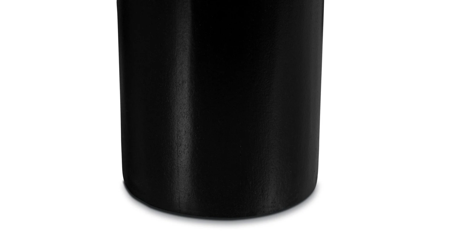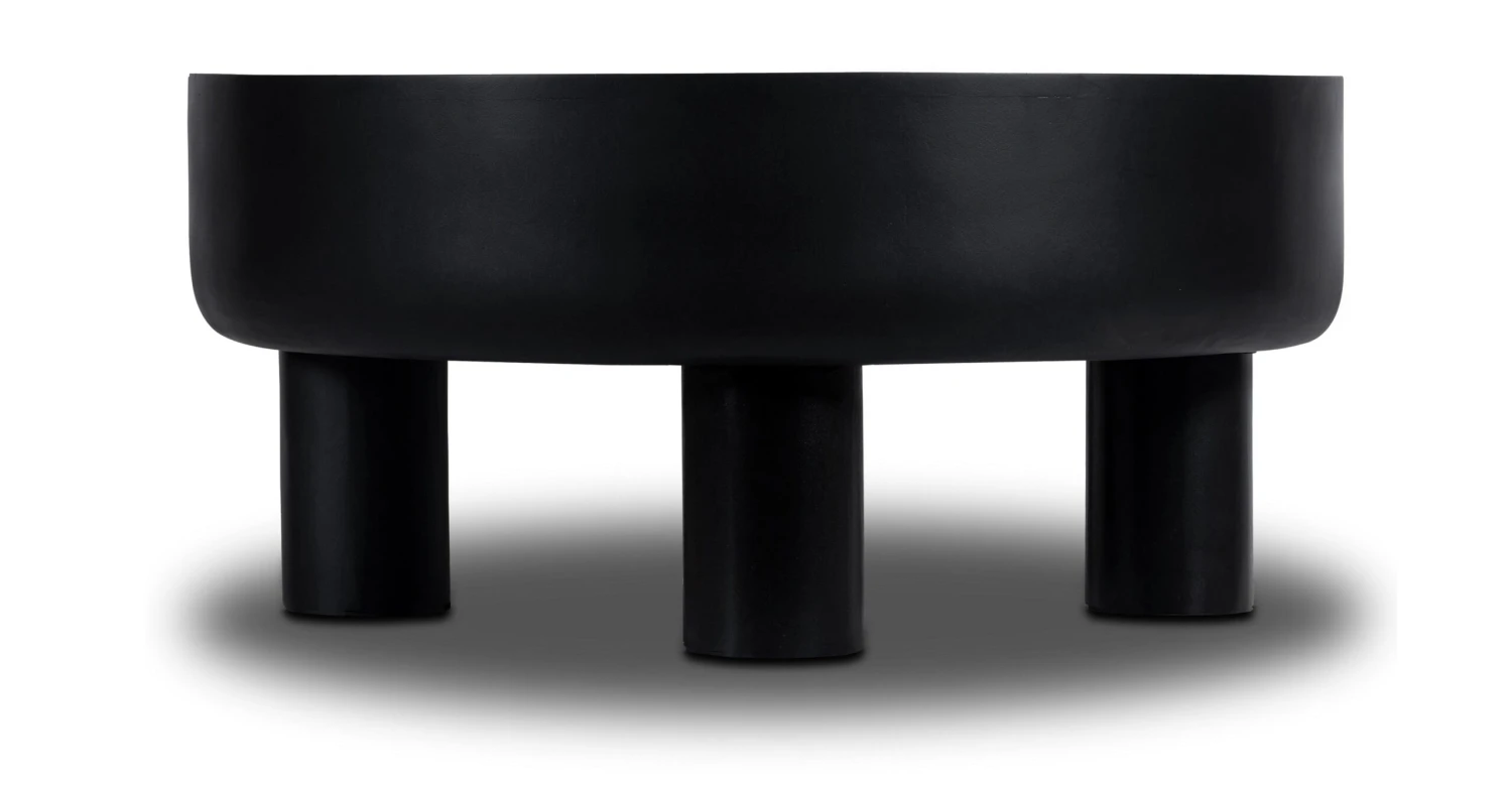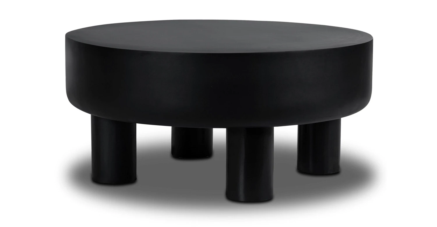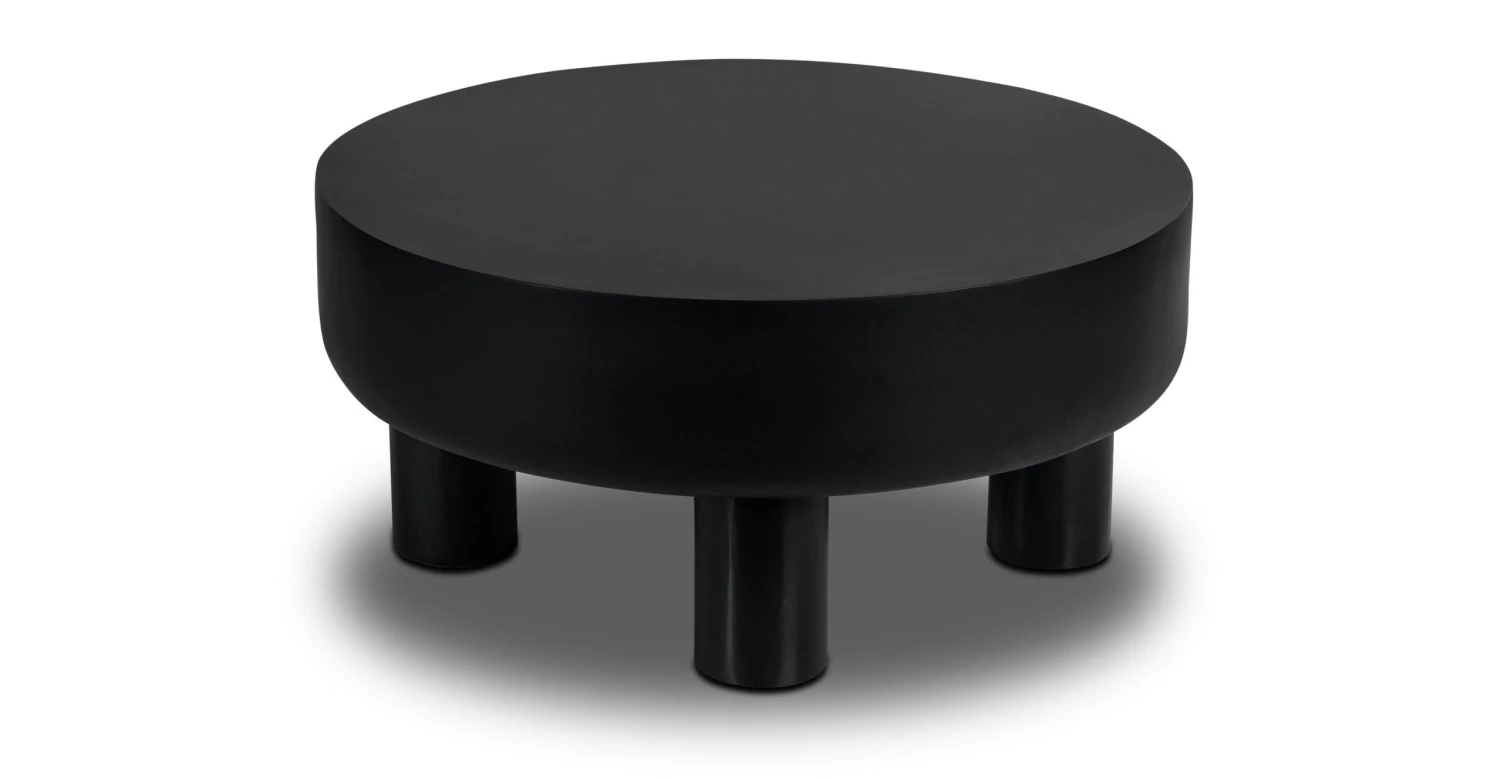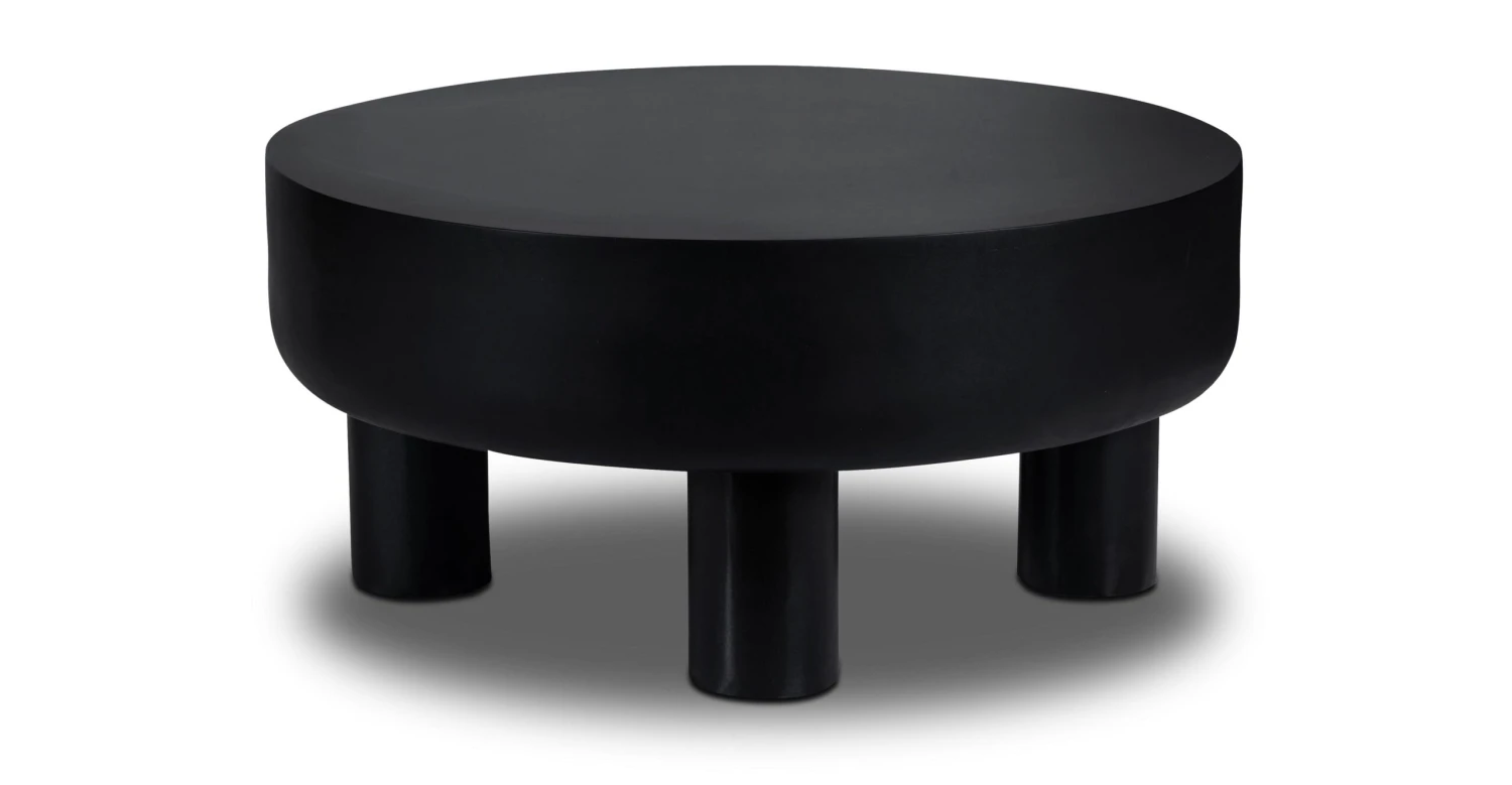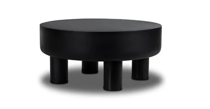 The Markham coffee table is a unique and eclectic piece that combines natural elements with a contemporary design. The table features a black, drum-shaped top with a smooth surface that curves gently around the edges, giving it a soft and inviting look. The top is supported by sturdy stump feet that add an earthy, organic feel to the piece. The combination of the black finish and natural wood elements creates a striking contrast that is both stylish and modern. This coffee table is the perfect addition to any bohemian-inspired living space, adding a touch of elegance and charm to any room.