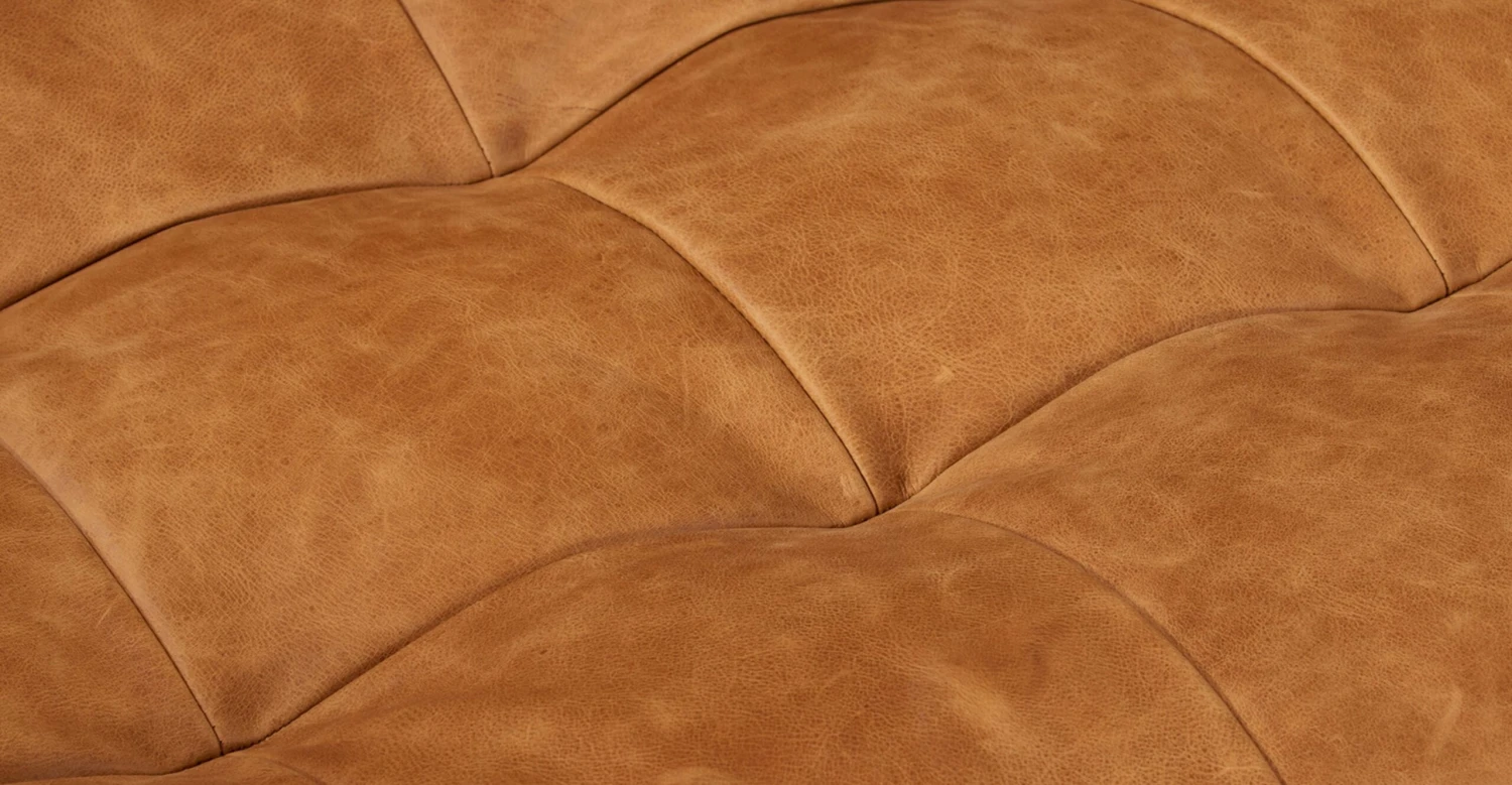 - Full-grain pure-aniline (cognac tan, nightfall blue) or semi-aniline (all other colors) dyed Italian tanned leather upholstery