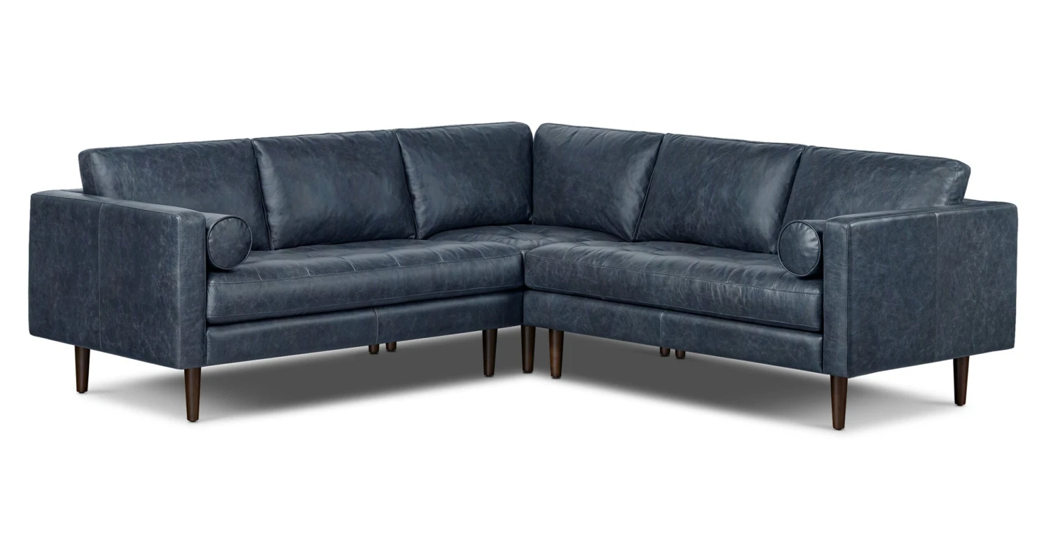 Consisting of two loveseats and one armless corner seat, the Napa Leather Corner Sectional Sofa is the textbook setup a cozy movie night at home. Crafted with gorgeous, full-grain pure-aniline Italian tanned leather, this sofa will naturally patina and in time, it’ll develop a deep character all its own. Toss a few pillows in the mix, along with a knit throw and you’re ready to settle in for the evening.
