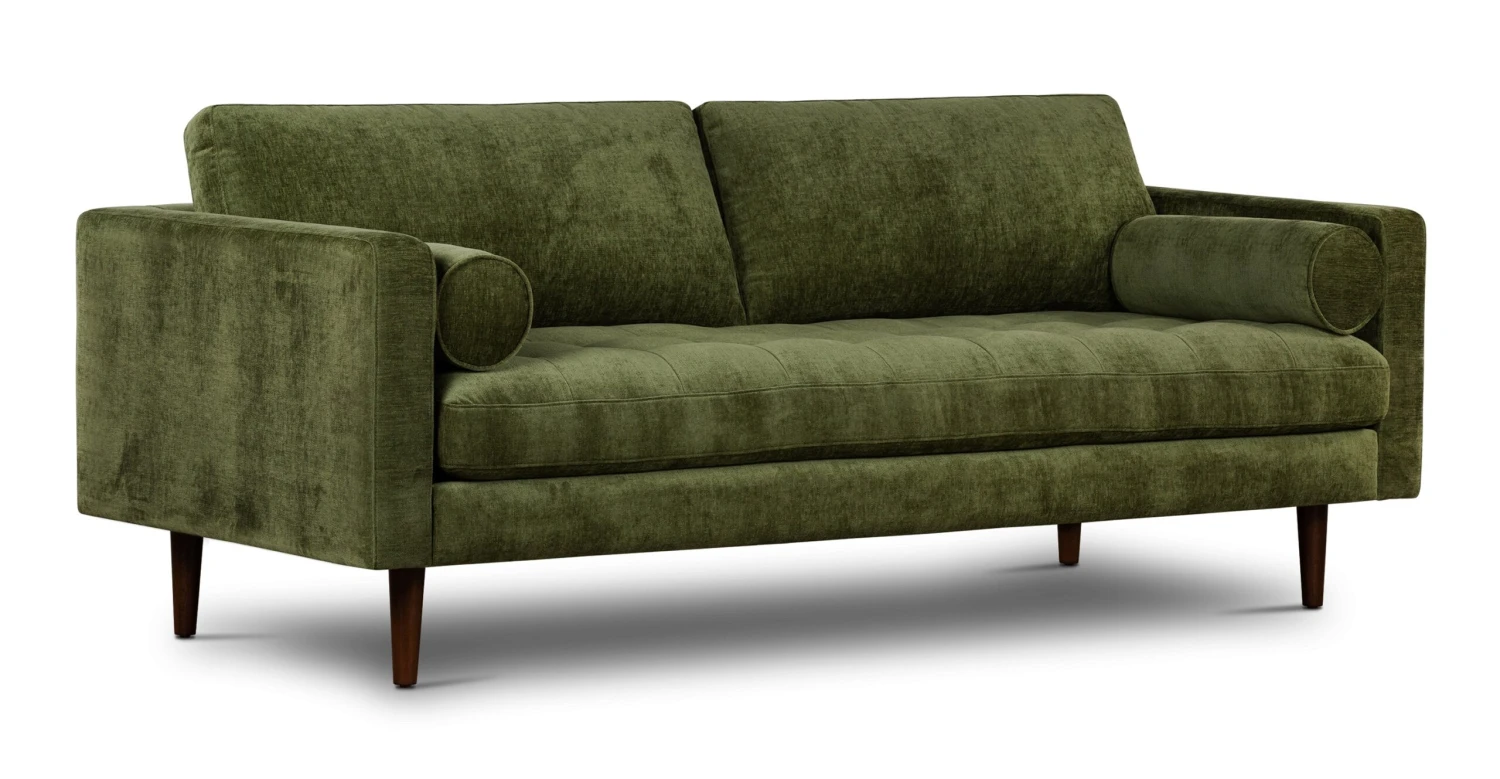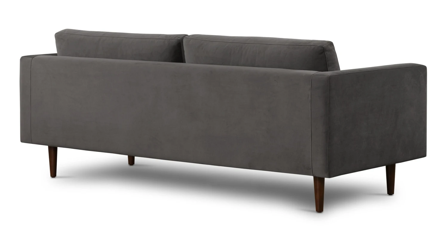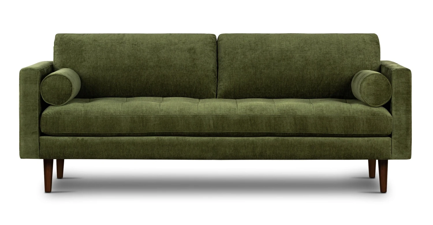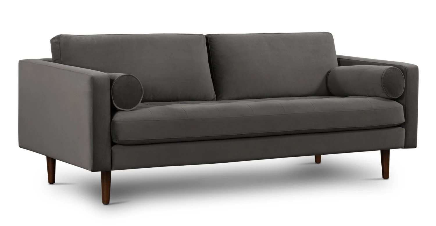 Concepted by the brilliant minds behind our wildly popular Napa Sofa in leather, this extraordinary fabric-upholstered twin carries on that high-style tradition. It presents elegant seat tufting and rounded bolsters, sloped arm rests for comfort, and sleek tapered legs in a rich walnut finish. Kick back and relax knowing this piece is built to last, crafted with a durable corner-blocked wood frame, Pirelli webbing support, and high-density foam cushions with feather blend toppers for an immensely soft, comfy experience. If ever there were an iconic silhouette to anchor your living space, this is it.