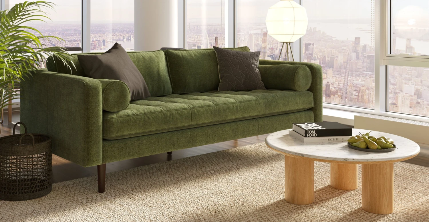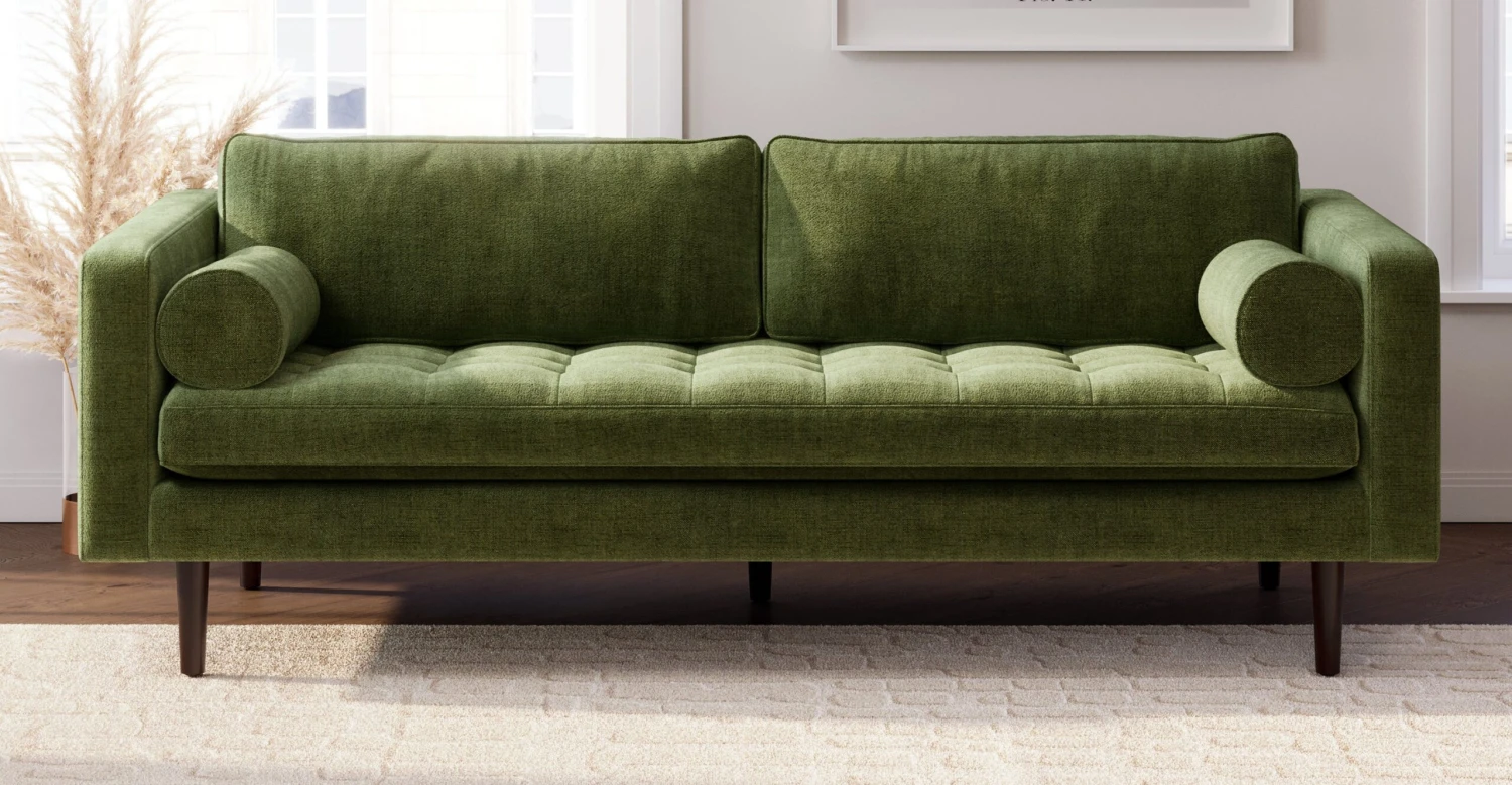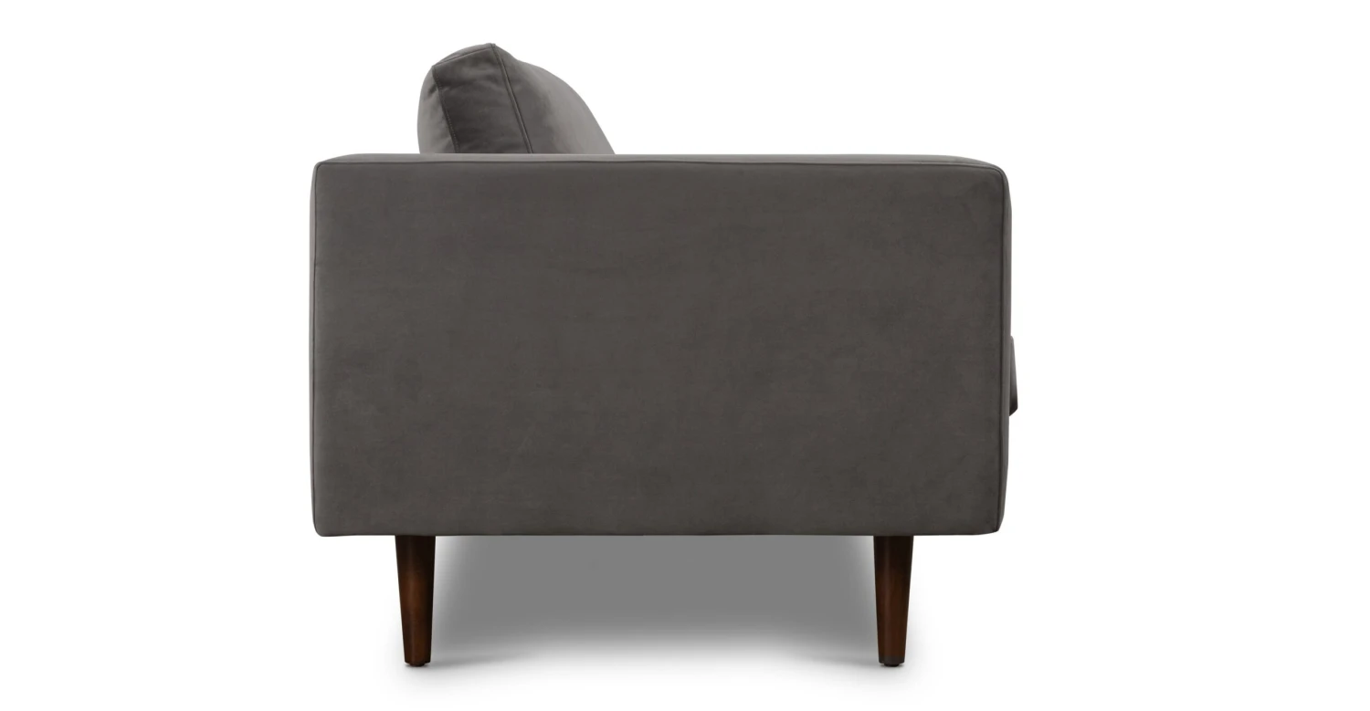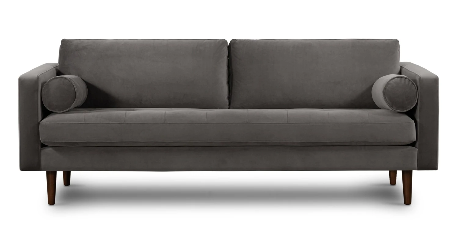 Concepted by the brilliant minds behind our wildly popular Napa Sofa in leather, this extraordinary fabric-upholstered twin carries on that high-style tradition. It presents elegant seat tufting and rounded bolsters, sloped arm rests for comfort, and sleek tapered legs in a rich walnut finish. Kick back and relax knowing this piece is built to last, crafted with a durable corner-blocked wood frame, Pirelli webbing support, and high-density foam cushions with feather blend toppers for an immensely soft, comfy experience. If ever there were an iconic silhouette to anchor your living space, this is it.