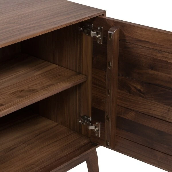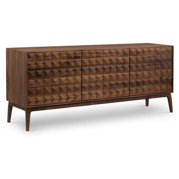 With its unique pyramid wood façade, our Abbie Sideboard aims to house your most treasured dining pieces in style. Three doors with soft close hinges ensure you’ll never disrupt your dinner party with a slamming cabinet door, and the adjustable height shelves allow your stemware and plates to live in harmony. A low profile and gorgeous wooden, tapered legs exude the mid-century modern style you’ve been dreaming of.