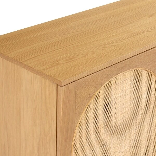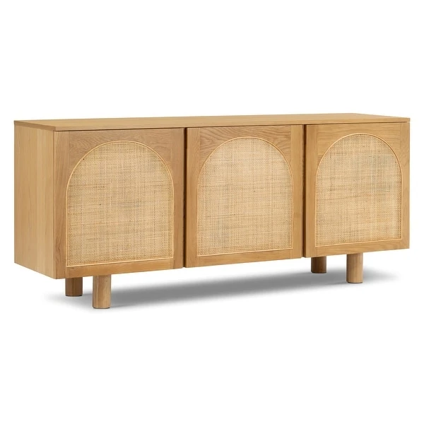 Much like the many arched doorways of Italy, arches adorn the doors of our Archi Sideboard to perfection. Crafted from solid and veneered American white oak with cane webbing door fronts, this sideboard is a showstopper capable of many things— but excels at housing your most treasured collections. Three cabinets open to ample storage space for entertaining and serving pieces, board games, or your irreplaceable vinyl albums.