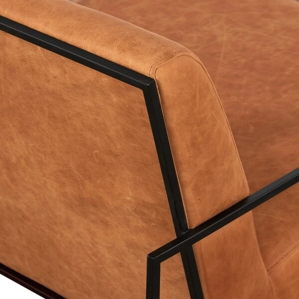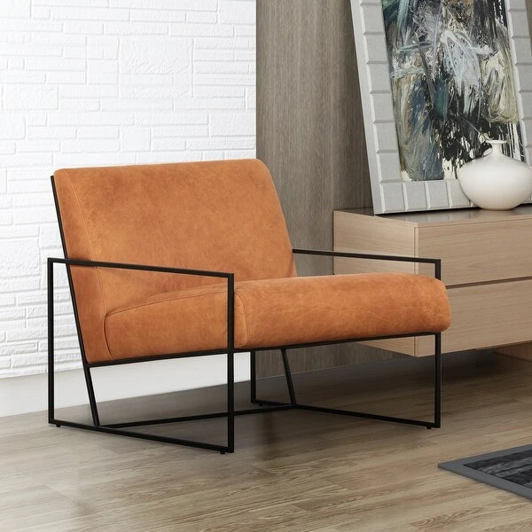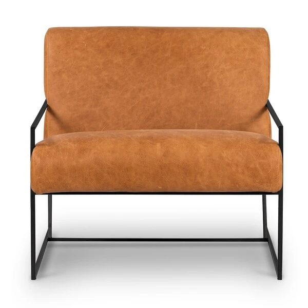 Our Bo Lounge Chair’s seat and back is suspended within a geometric matte black metal frame garnering ooohs and ahhhs from the crowd. The cognac tan leather upholstery complements the black powder-coated frame to perfection, while the foam core, poly fill, and interior wooden frame offer substantial support. With a light and airy design, this chair is ready to find its place in your space.