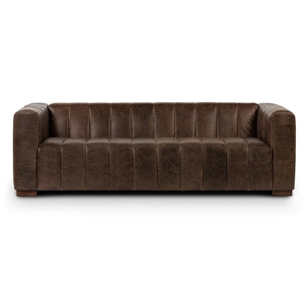 This channel-tufted charmer will add warmth and style to your space. The Canale Sofa features channel-tufted, full-grain pure aniline Italian tanned leather upholstery with a buttery-soft feel—that, like a fine wine, only gets better with age. Its modern, low profile takes your design game up a notch, while the comfort factor skyrockets. The Canale Sofa is ready for all the movie marathons you can dish out.