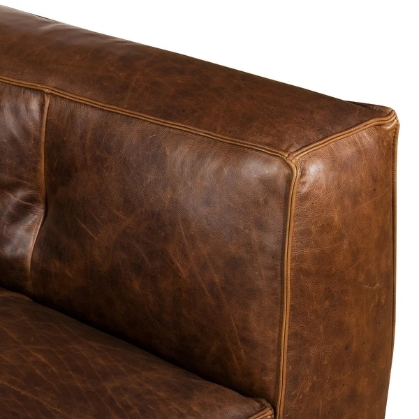 Minimalist vibes, maximum impact. With french seams, an extra-low back line and a clean, boxy profile, this lounge-friendly piece is the definition of cool-without-trying-too-hard. Experience sink-right-in comfort thanks to movement-friendly Pirelli webbing and high-density foam cushions with a poly fill. The full-grain, aniline-dyed Italian leather will gradually develop a unique patina as it collects markings and texture from everyday use.