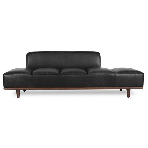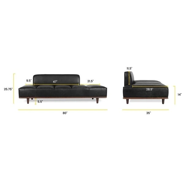 The Poly and Bark Jasper Daybed is a stunning piece that combines modern style with timeless comfort. Whether you’re lounging with a book or hosting guests, this daybed lends itself perfectly to both. The upholstery is made of full-aniline dyed leather (Cognac Tan) or semi-aniline dyed leather (other colors), which develops a rich vintage patina over time. The solid ash wood frame features a walnut finish and has been kiln-dried to prevent warping. High-density foam cushioning and a duck feather topper make for ultimate comfort, whether you’re relaxing in the living room, sunroom, or guest room.