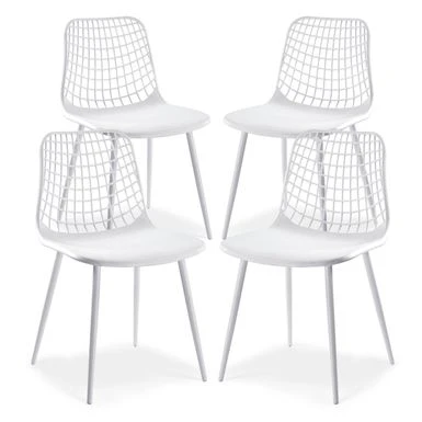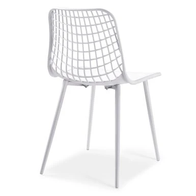 Add a touch of industrial style to your dining room with this set of four Marais Dining Chairs from Poly and Bark. The open-meshed backrest design gives these chairs a laid-back, casual feel, while the molded polypropylene seats offer ergonomic comfort for extended sitting. The chairs also feature powder-coated metal legs that are scratch-resistant and UV-resistant, making them perfect for indoor and outdoor use. With easy assembly and compact storage, this set of four chairs is a versatile addition to any home.