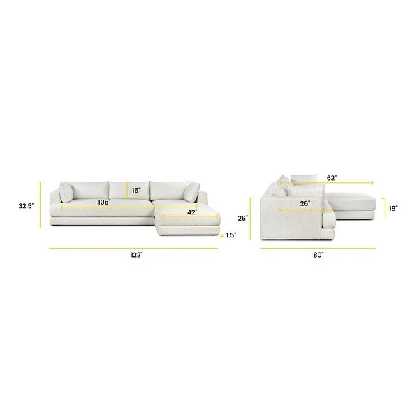 Seating Dimensions: 105″W x 62″D Chaise – 26″D Loveseat (until back cushion) x 18″H
