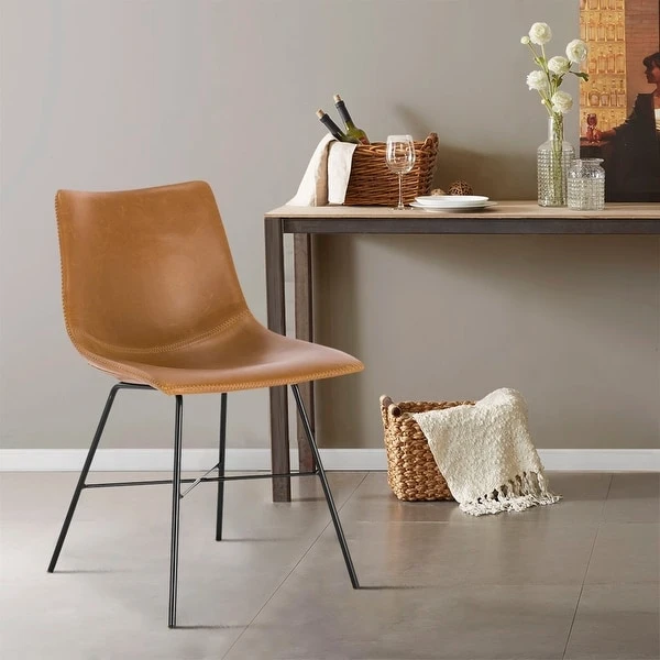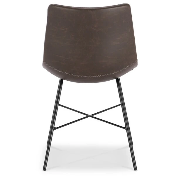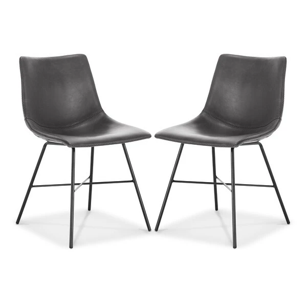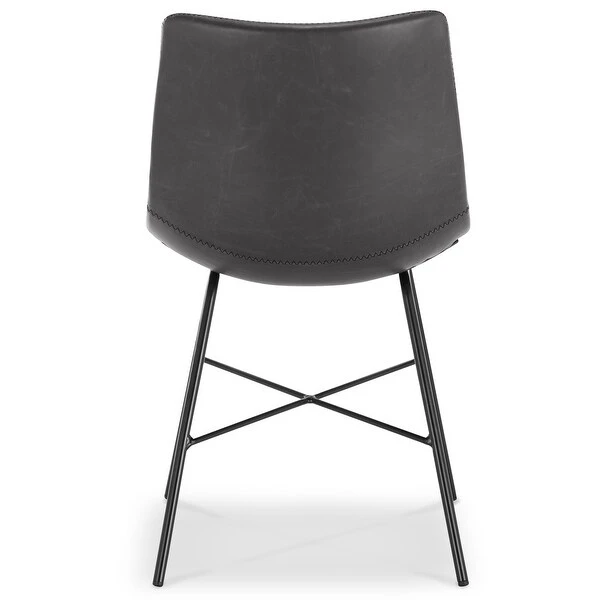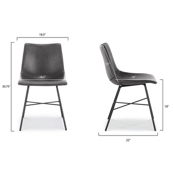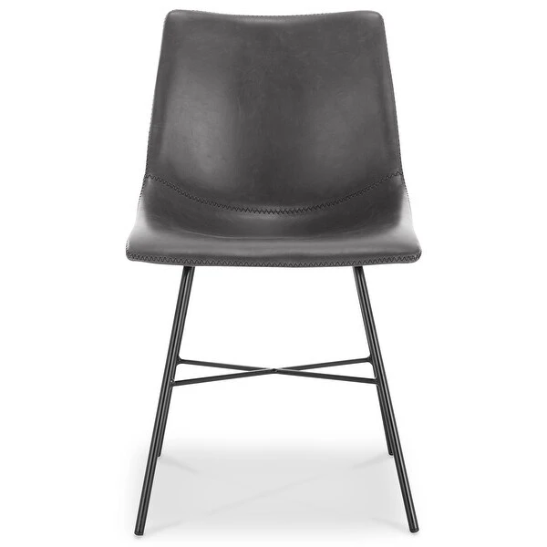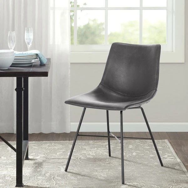 Subtle curves and modern lines merge, infusing this dining chair and your space with undeniable sophistication. The upholstered gray textured high durability leatherette complements any decor style and its gently scooped seat is outlined in eye-catching luxe reinforced saddle stitching detail. Stunningly sturdy, this dining chair features a welded steel base and steel legs in a matte black powder coating. Long-lasting and oh-so charming, it’s the perfect addition to your living/dining area or breakfast nook.