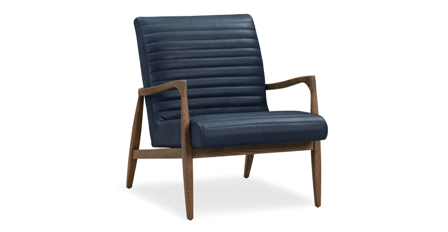 A signature piece for your stylish space, the Rowan Lounge Chair exudes modern luxury with unique ribbed seat texture and shapely frame. The solid ash wood frame is kiln-dried to prevent warping and features a rich walnut finish. It wraps around the high-density foam cushions, creating artful angles and curves from arms to tapered legs. It’s crafted with full-grain pure-aniline dyed leather upholstery, which is preferred globally for the hide’s natural markings and creases, plus its ability to take on scuffs, patinating nicely with use. This chic lounge chair promises to evolve along with your tastes over time.