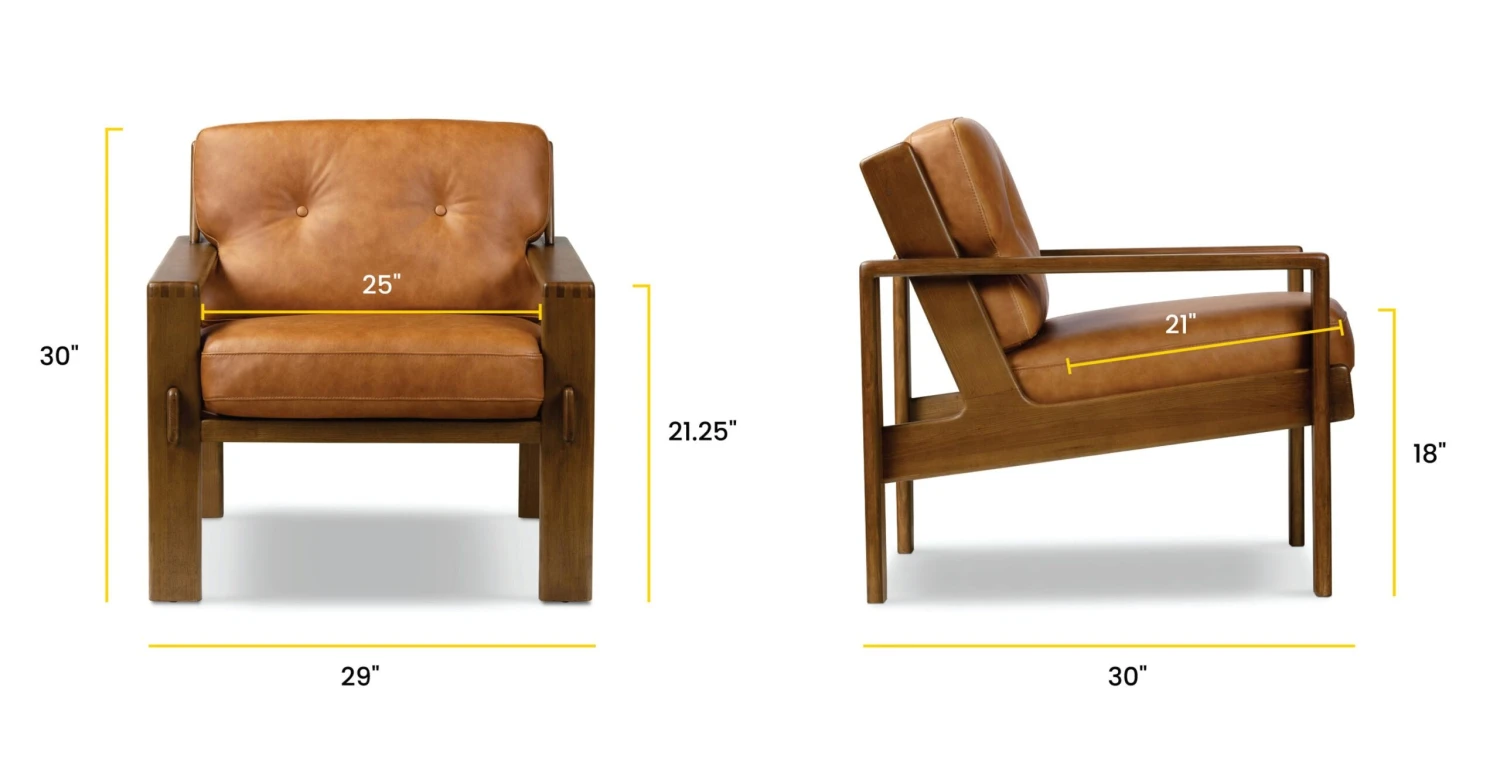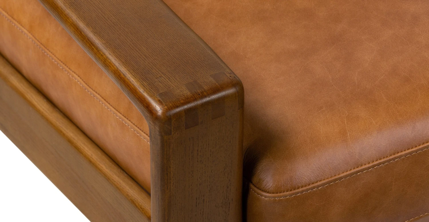 Materials: Kiln-dried solid ash wood, high density foam, polyester fiber, full-grain pure-aniline (Cognac Tan) or semi-aniline (Onyx Black) dyed Italian tanned leather