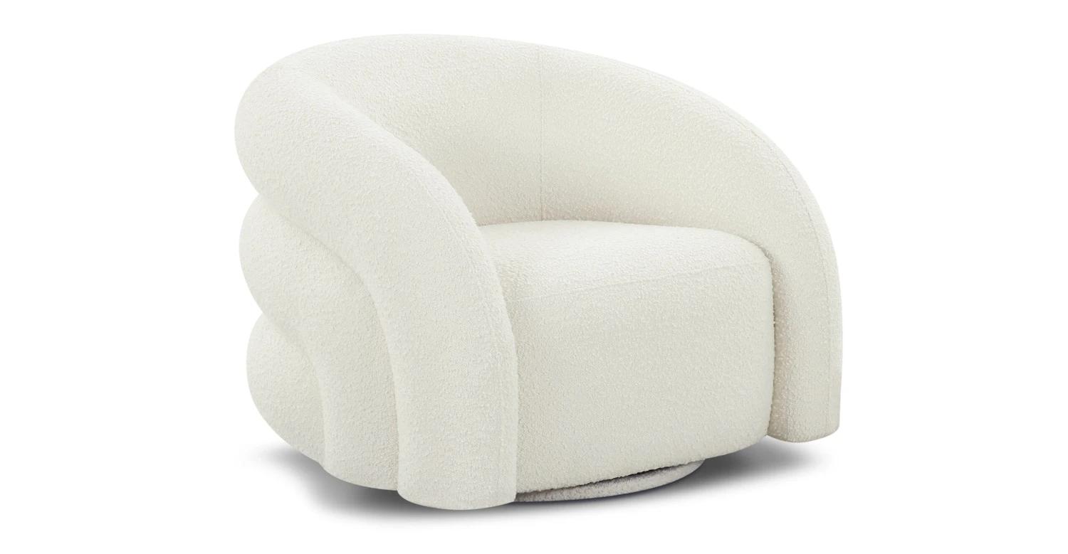 Our Volos Swivel Chair looks and feels like a dream. With a luxe channel tufted backside and low profile, this plush and posh chair wants to swivel its way into your life. Add this chair to your living room, bedroom, or den for a quick aesthetic update. Pro tip: this accent chair looks incredible in pairs.