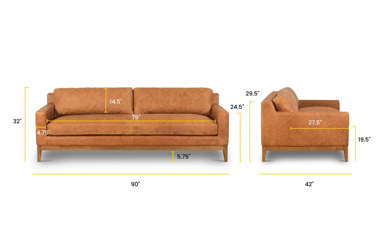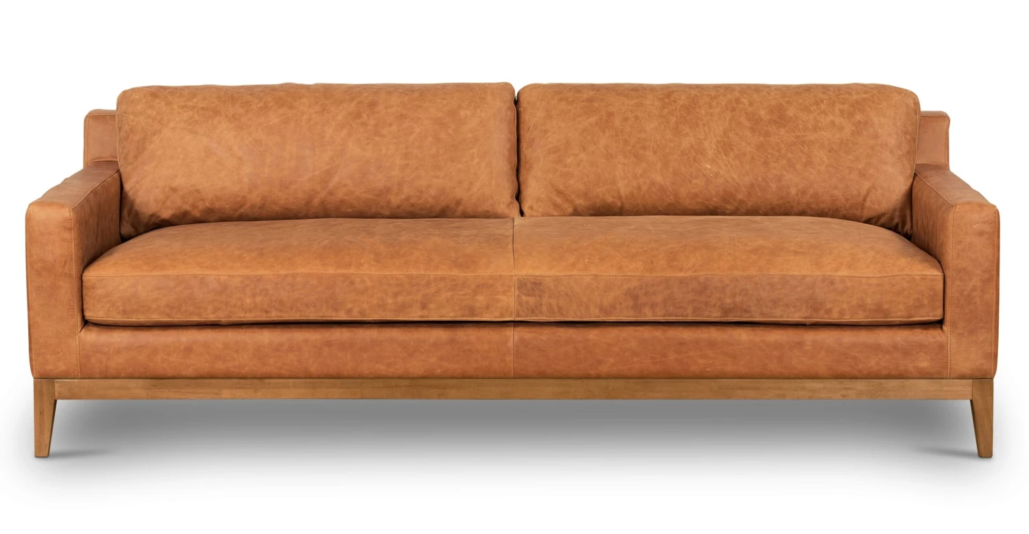 A touch of warm cognac is just the thing you need to bring your décor game up a notch or two, and our Zyon Sofa in Cognac Tan delivers tenfold. Boasting deep seating and supple full-grain, pure-aniline Italian leather, that only gets better with age, this sofa is the epitome of refined elegance. Toss in a couple throw pillows and a woven blanket and you’ll have the perfectly-styled space of your dreams.